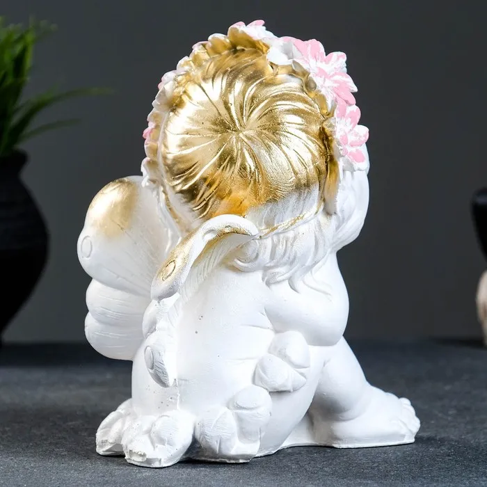 Сувенир полистоун "Ангел в венке из роз в молитве" МИКС 6х4х2,6 см