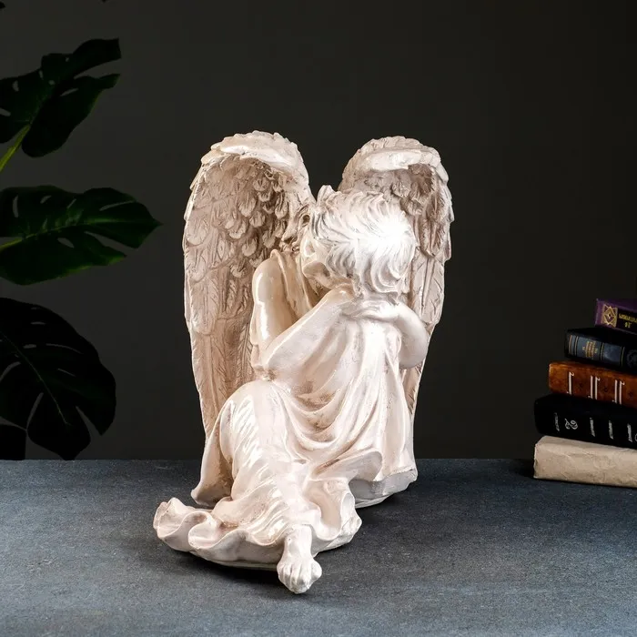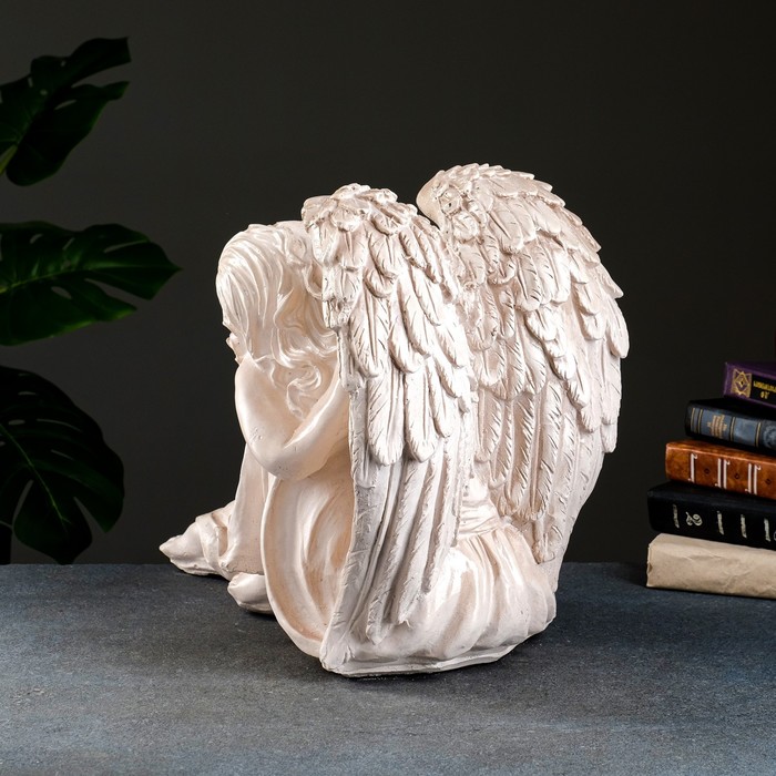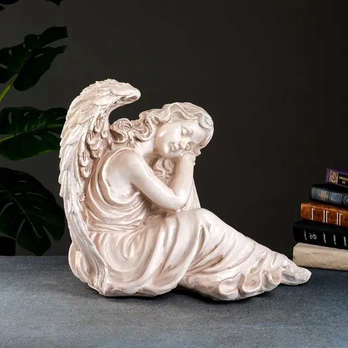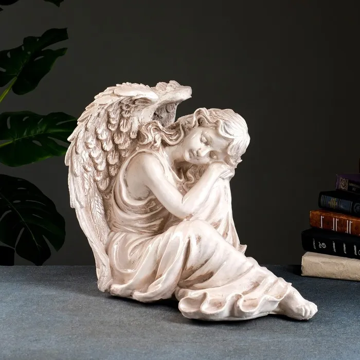 Фигура гипс «Ангел девушка сидя», большая, состаренный, 28×36×45 см — Характеристики