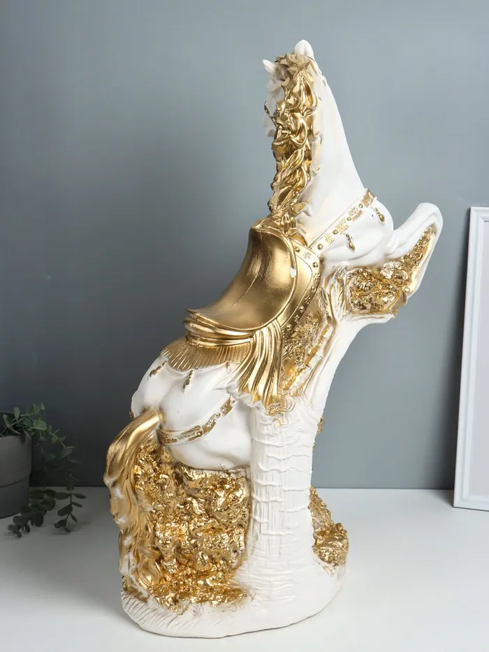 Фигура гипс «Конь, Арабский скакун», 67×47×24 см, белый с золотом — Характеристики