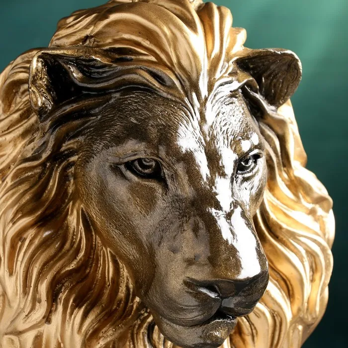 Чёрно-золотая отделка подчёркивает монументальность фигуры, добавляя ей роскоши и элегантности. Лев, как символ власти и уверенности, станет не просто украшением, но и источником вдохновения для тех, кто ценит стиль и характер в деталях. Универсальный дизайн позволяет использовать её как самостоятельный элемент декора или как часть композиции для особых случаев.