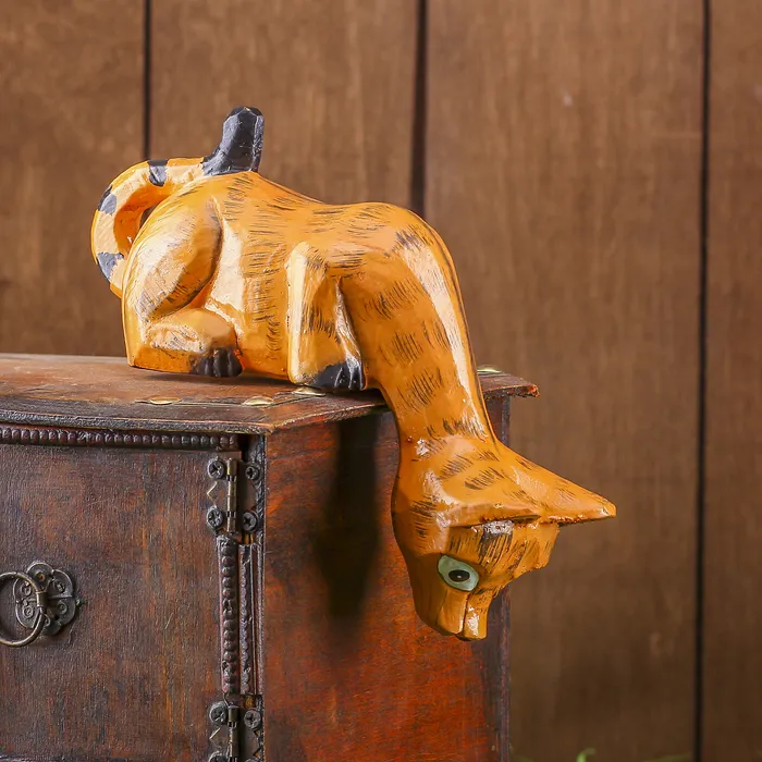 Фигура интерьерная «Котёнок Рыжик подглядывает», 19×11×5 см, дерево — Характеристики