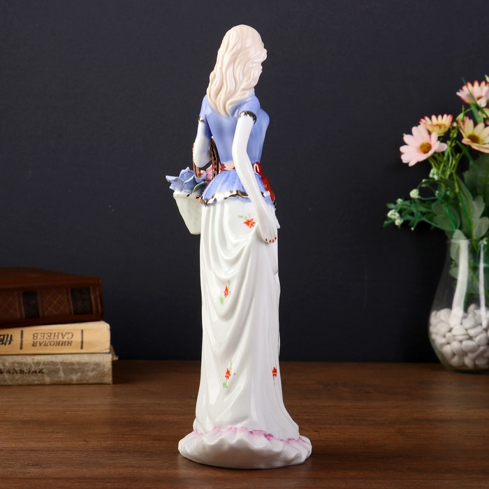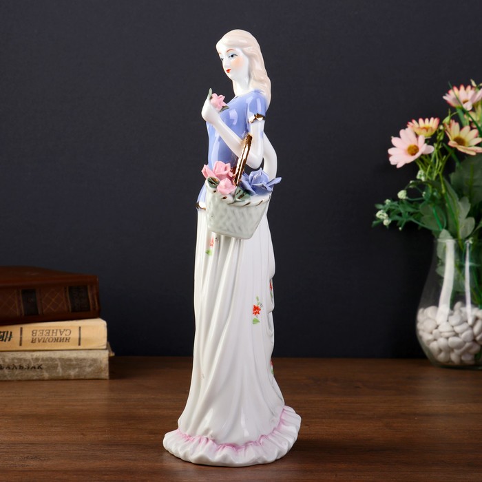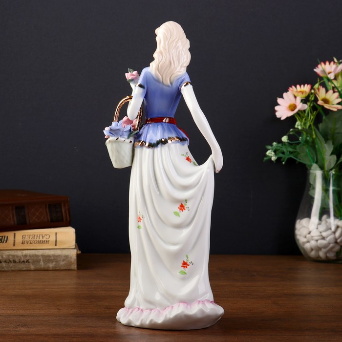 Фигура керамика «Девушка в юбке в цветах с корзиной», бело-голубая, 31×12×9 см — Характеристики