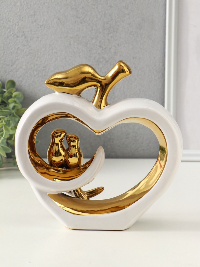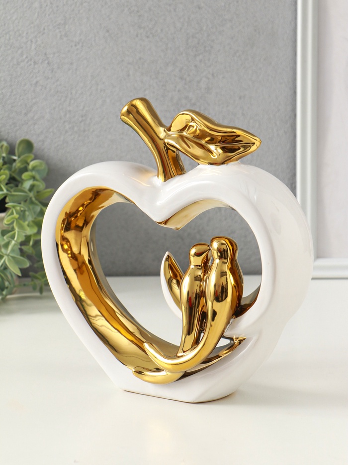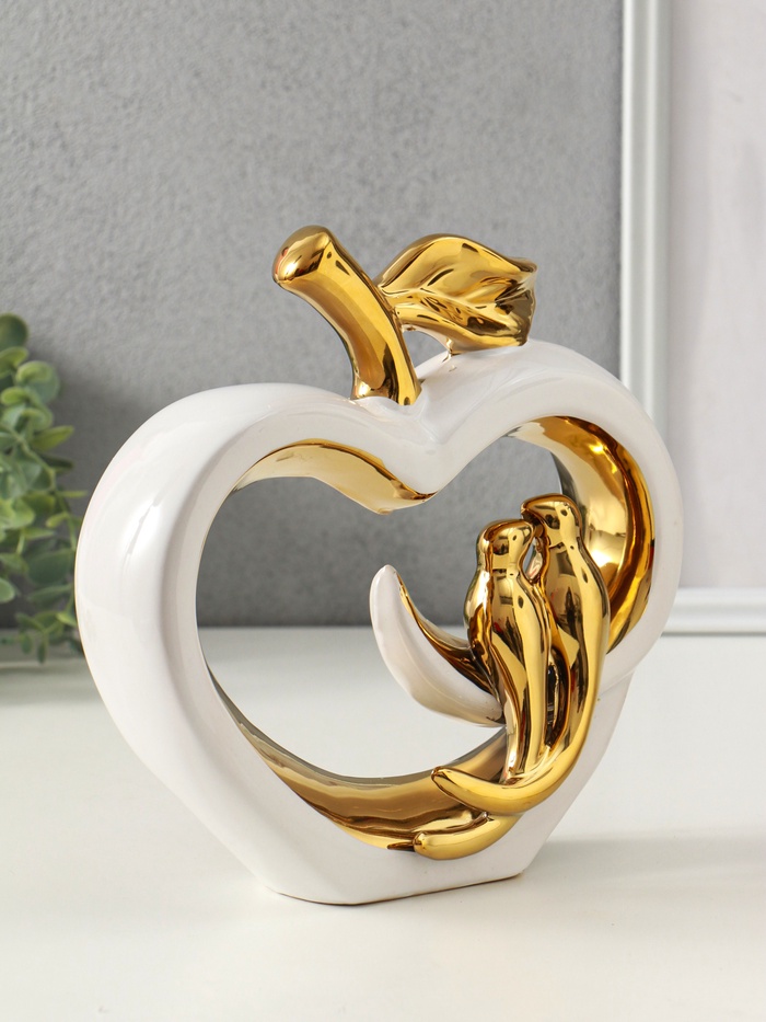 Эта белая керамическая фигура с золотом — элегантный акцент для вашего интерьера и трогательный подарок для особого случая. Композиция из двух птичек на яблоке символизирует любовь, нежность и семейное счастье.