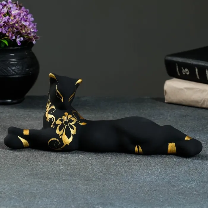 Фигура керамика «Кошка Багира лежачая», роспись, чёрная, 7×27×10 см — Характеристики