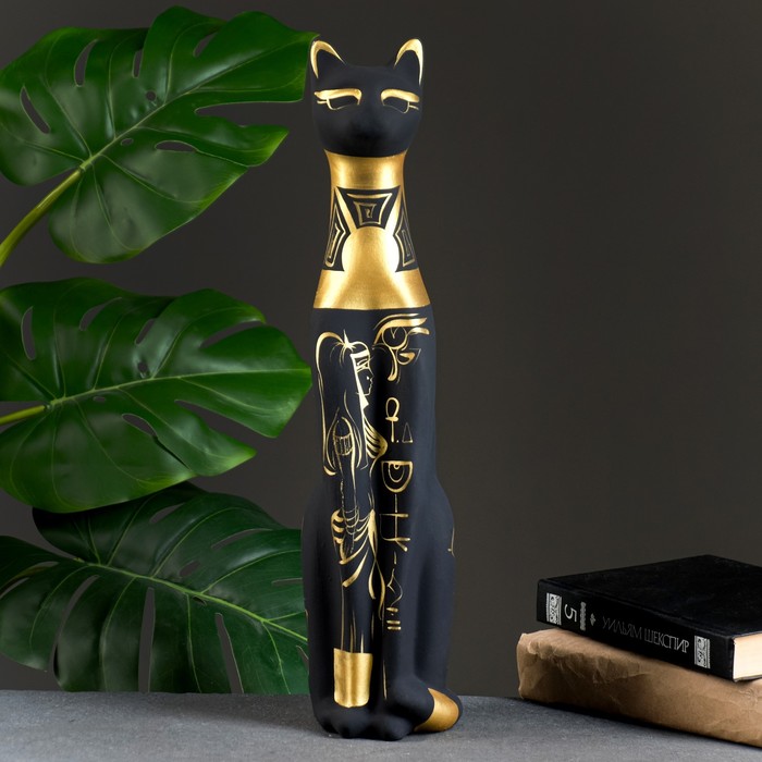 Фигура керамика «Кот Египетский», роспись, чёрный, 10×10×41 см — Характеристики