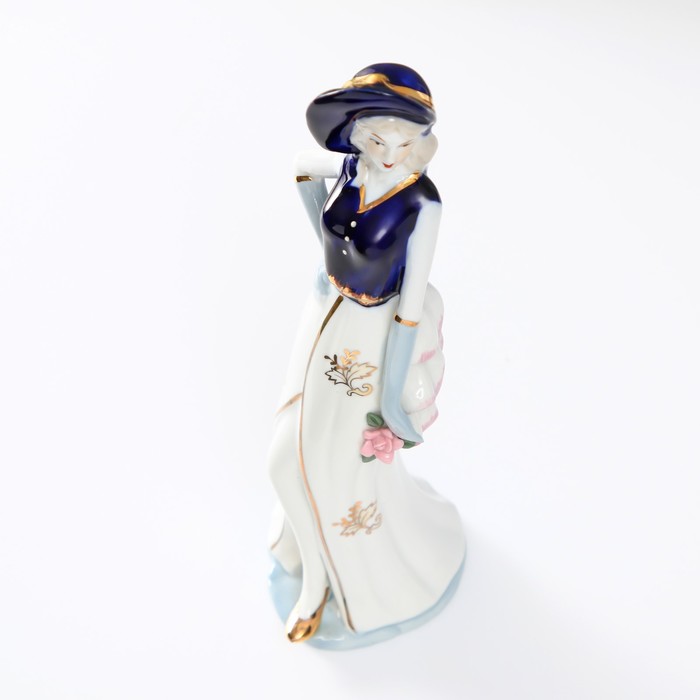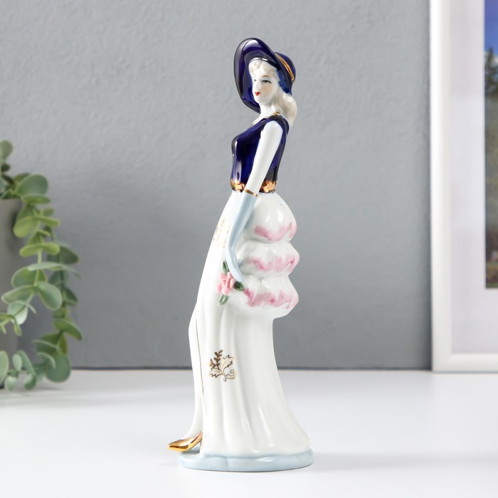 Фигура керамика «Мадмуазель в платье с разрезом, с цветком», кобальт, 22.5×6.5×7.3 см — Характеристики