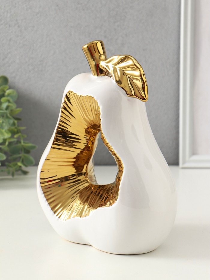 Эта керамическая фигура в виде среза груши — элегантный акцент для интерьера, наполняющий пространство ощущением гармонии и утончённого вкуса. Её лаконичная форма и сдержанная цветовая гамма создают универсальный декор, который легко впишется в любую обстановку.