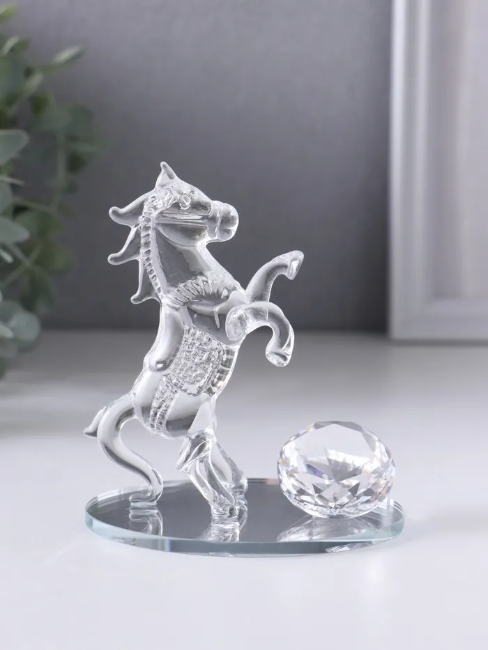 Фигурка стекло «Конь на дыбах, с бриллиантом», 8.5×6×9.5 см