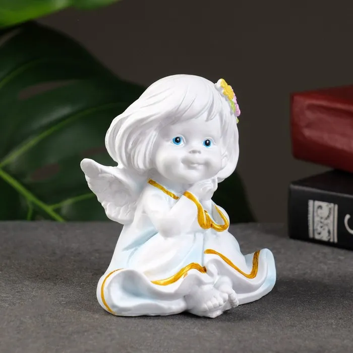 Фигура "Малышка-ангел с цветами в волосах" 7х8х9см
