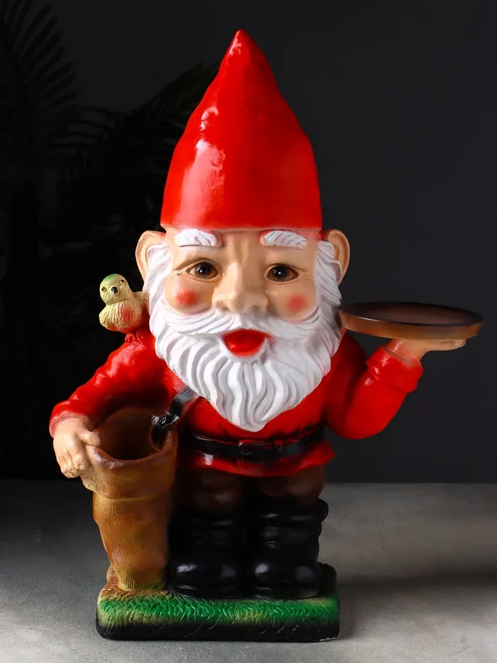 Позвольте этому очаровательному персонажу поселиться в вашем доме, чтобы не только радовать глаз, но и помогать в организации пространства. Выполненный из прочного гипса и раскрашенный вручную, этот яркий гном высотой 52 см станет многофункциональным элементом декора с характером.