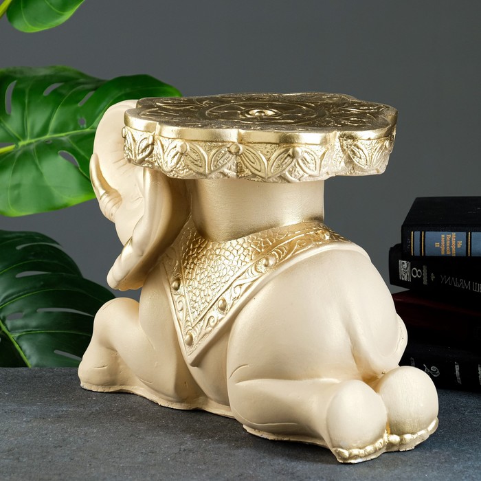 Компактные размеры 26×42×22 см позволяют органично вписать подставку на журнальный столик, комод или полку, а плоская поверхность на спине слона идеально подходит для хранения изящных безделушек, ключей или украшений.