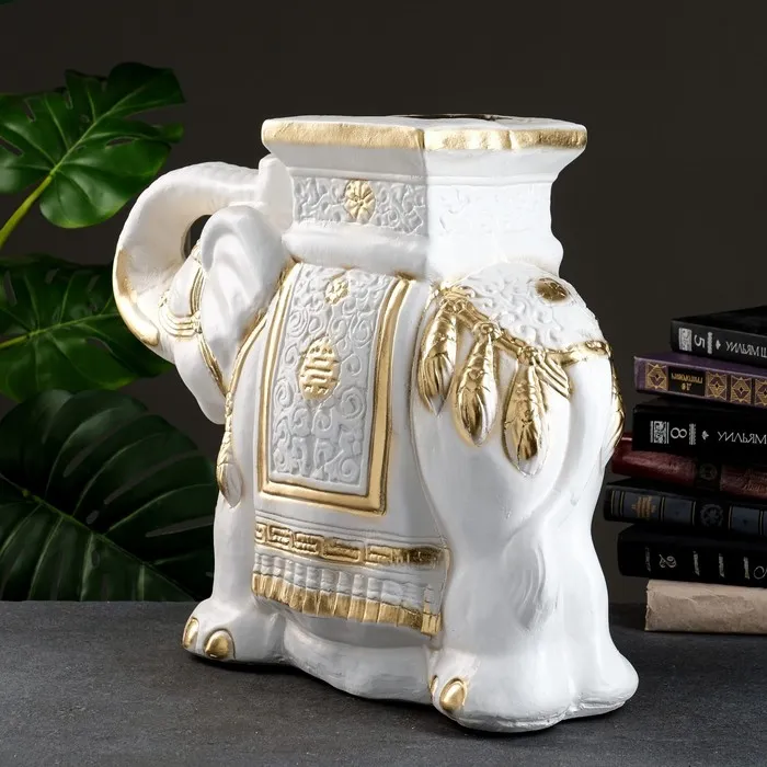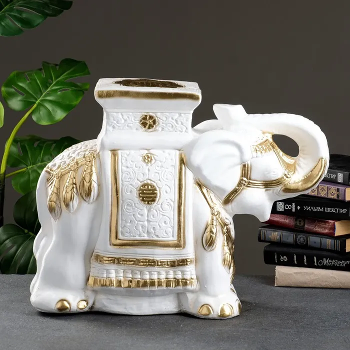 Фигура-подставка для мелочей «Слон», столик, гипс, бело-золотой, 21×54×43 см — Характеристики