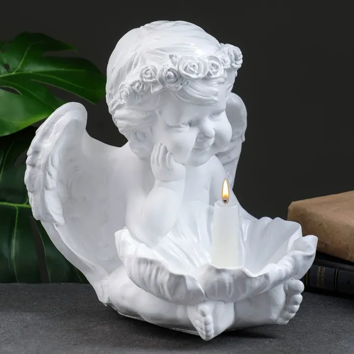 Фигура - подсвечник "Ангел с кувшинкой" 23х23х27см белый — Характеристики