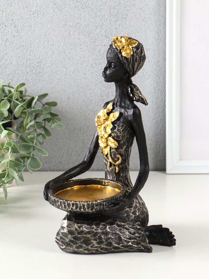 Эта статуэтка-подсвечник в виде африканки — выразительный акцент для интерьера. Её тёплое пламя создаёт уютную атмосферу, а изящный силуэт наполняет пространство особой энергетикой и стилем.