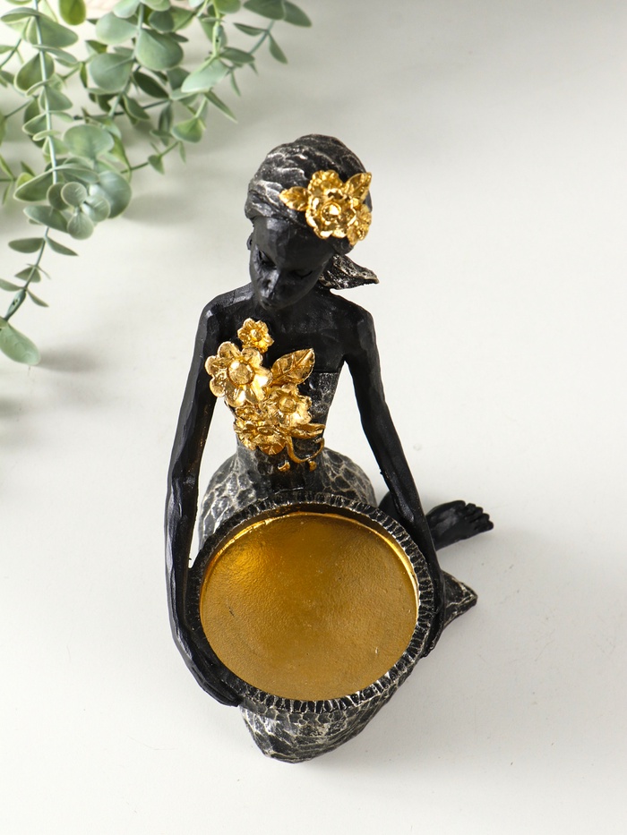 Установите свечу — и мягкий свет подчеркнёт изящные черты лица и фактуру одежды. Это больше, чем подсвечник; это небольшая история, приглашающая к созерцанию и отдыху. Идеальное решение для ценителей этнического декора и душевных подарков.