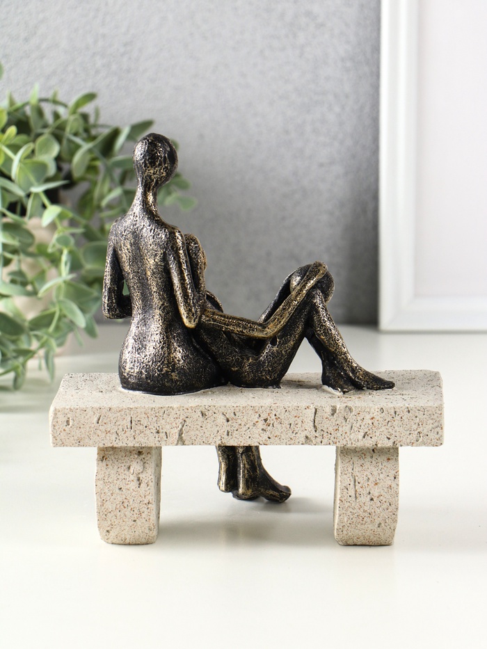 Фигура полистоун «Абстракция. Мама и ребенок на скамейке», бронза с бежевым, 17.5×10.5×19 см