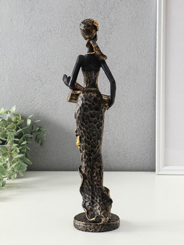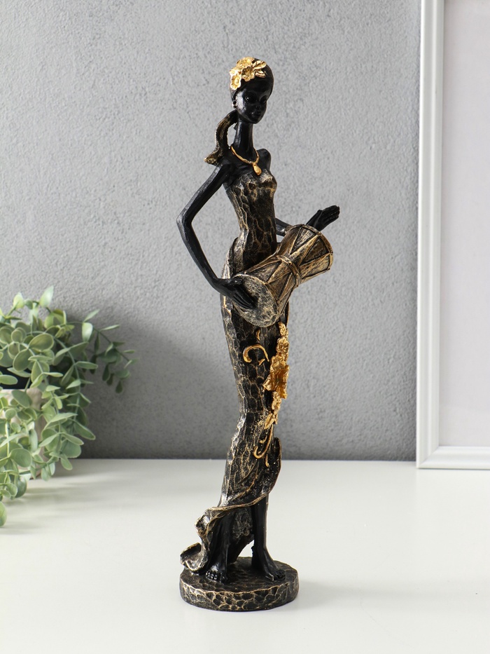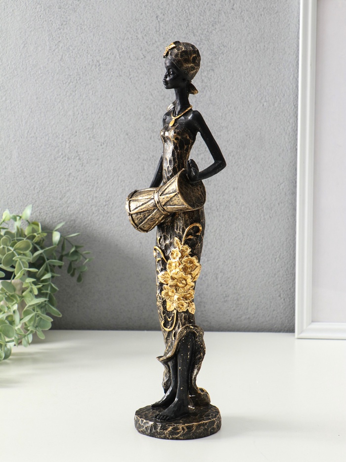 Фигура полистоун «Африканка в косынке с цветами и барабаном», чёрный, 8.5×8.5×39 см — Характеристики