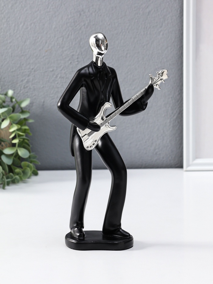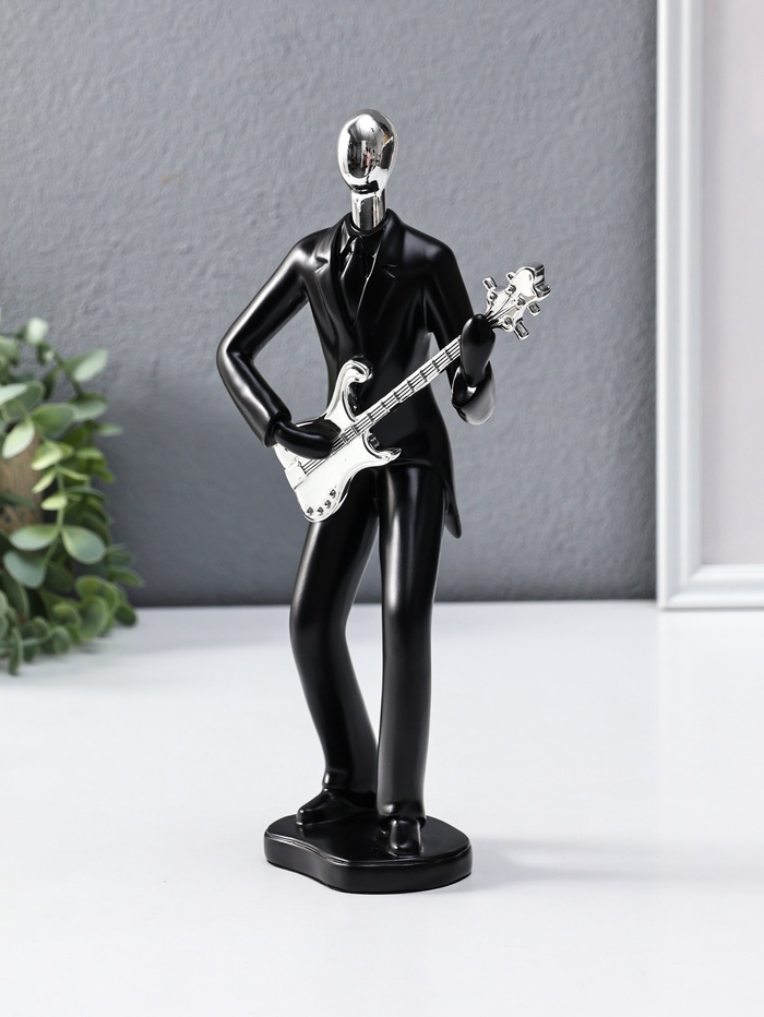 Фигура полистоун «Гитарист», чёрный с серебром, 6.5×15.2×27.5 см