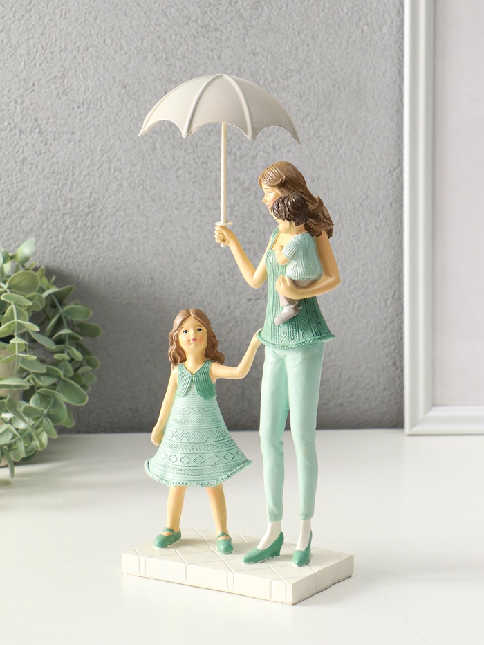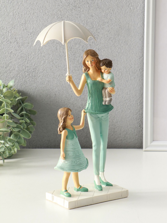 Фигура полистоун «Мама с детьми в вязанных нарядах, под зонтом», 7.5×12.5×24 см — Характеристики