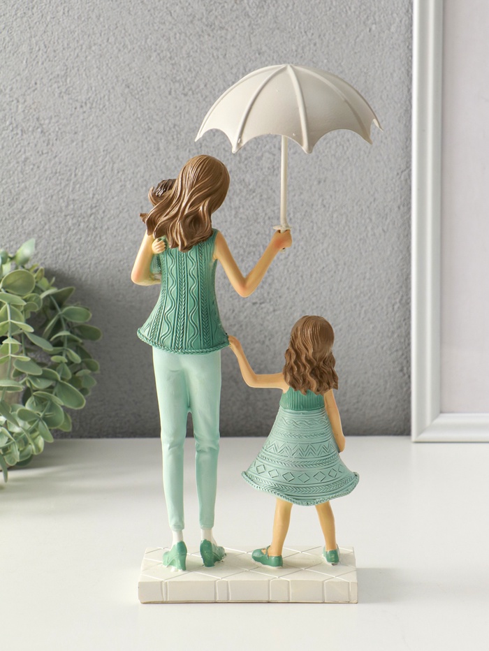 Эта скульптура матери с детьми создаёт в доме атмосферу нежности и заботы. Композиция в уютных вязаных нарядах, укрывающаяся под зонтом, передаёт тепло семейных отношений и становится символом материнской любви. Универсальная тематика делает фигуру уместным подарком на День матери, годовщину или просто в знак внимания.