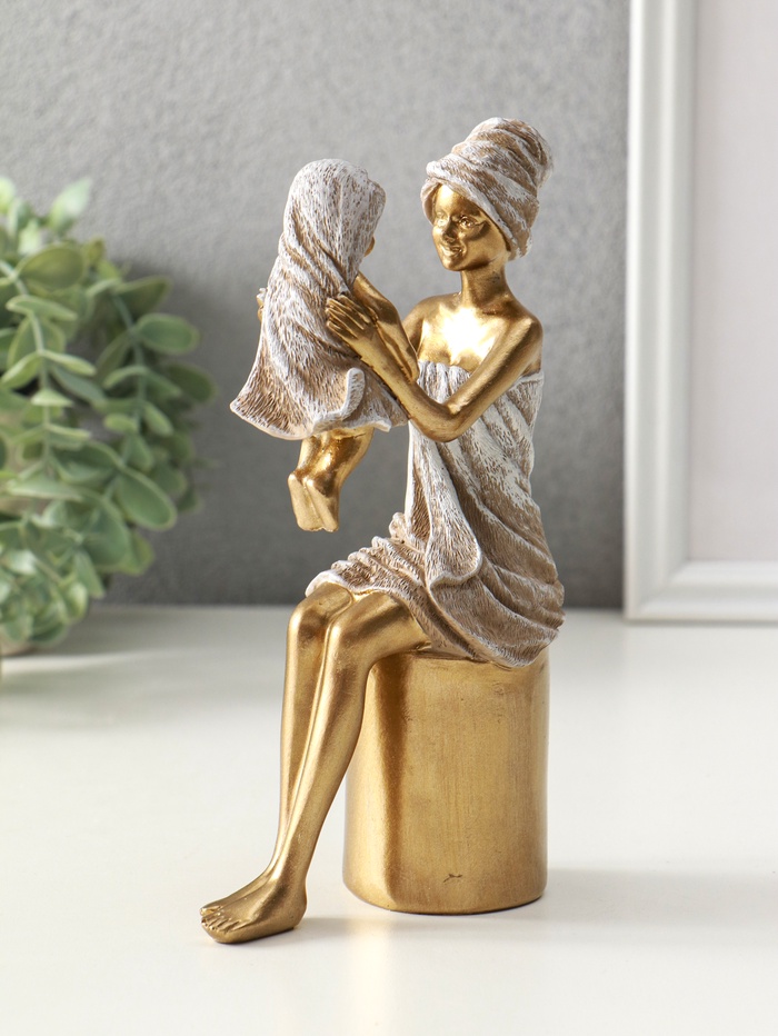 Эта скульптура матери с ребёнком после купания запечатлевает момент абсолютной нежности и заботы. Композиция передаёт тёплую атмосферу семейного уюта, делая её глубоко личным и эмоциональным подарком.