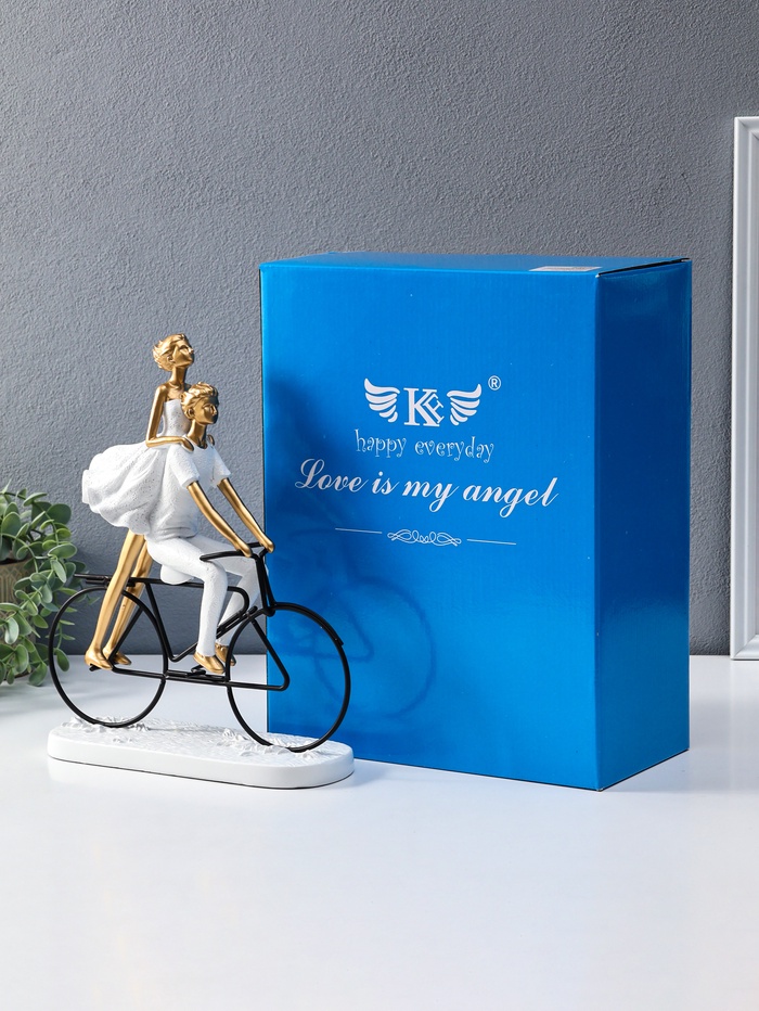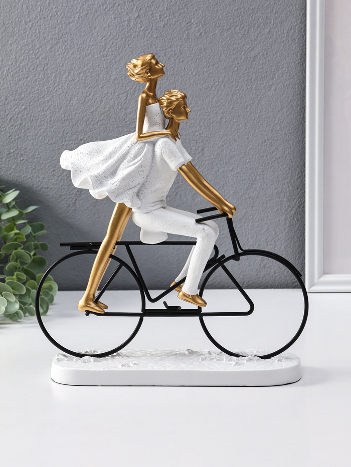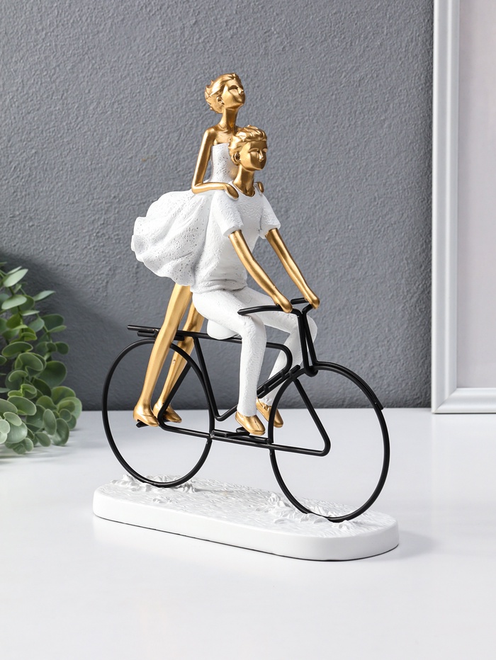 Фигура полистоун «Парочка на велосипеде», бело-золотой, 8.5×23×29 см — Характеристики