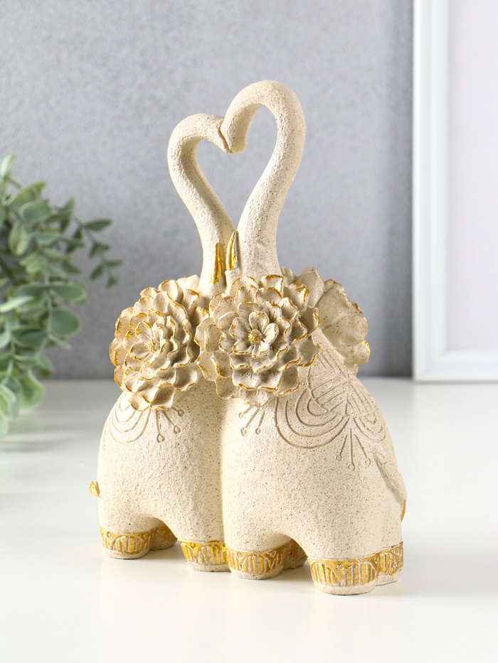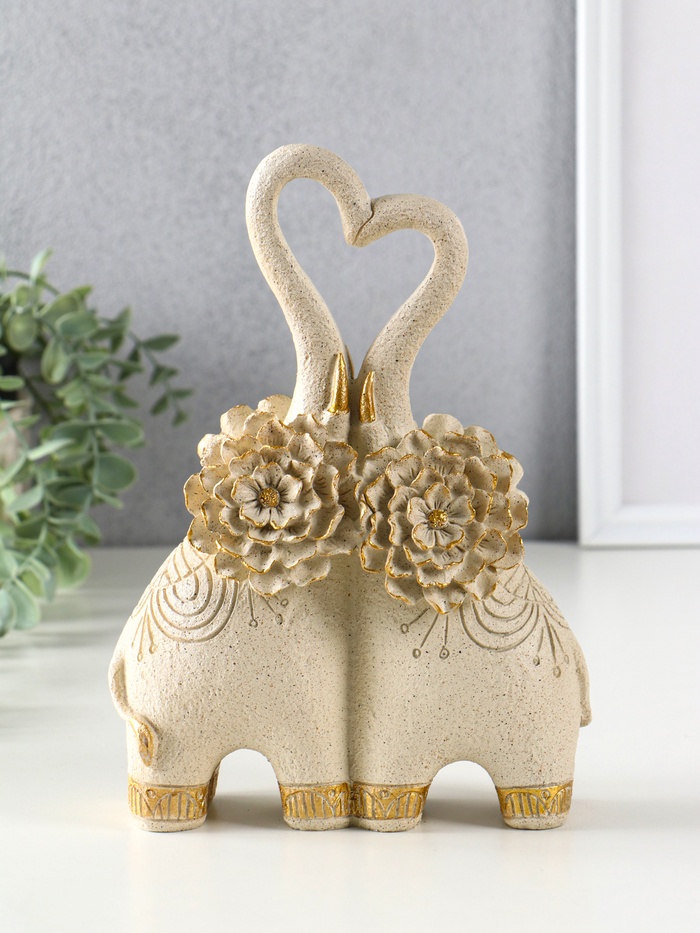 Фигура полистоун «Парочка слонов с цветочными ушами», песочный, 8×17×25.5 см — Характеристики