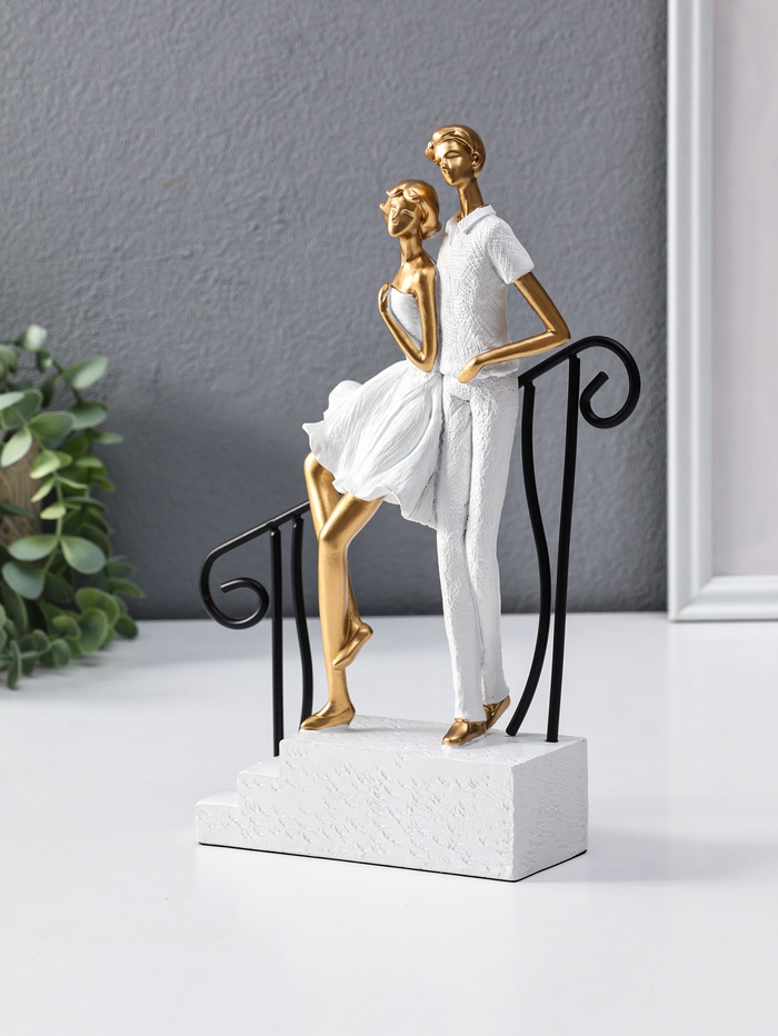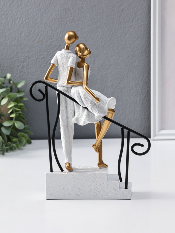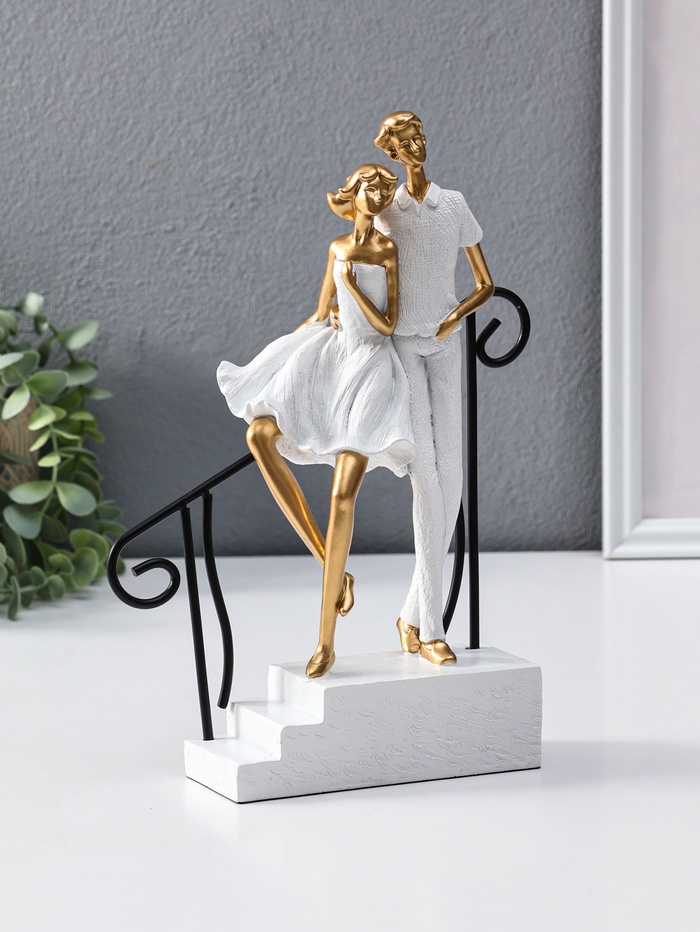 Фигура полистоун «Парочка стоит у перил», бело-золотой, 5.5×20×26.5 см — Характеристики