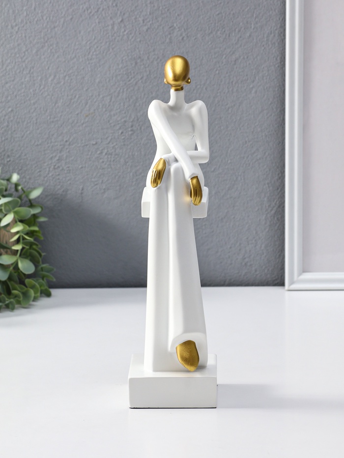 Фигура полистоун «Стильная девушка на стуле», белый с золотом, 7.5×10.5×29.5 см — Характеристики