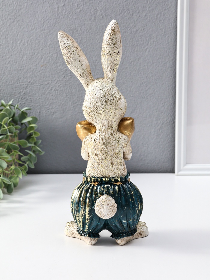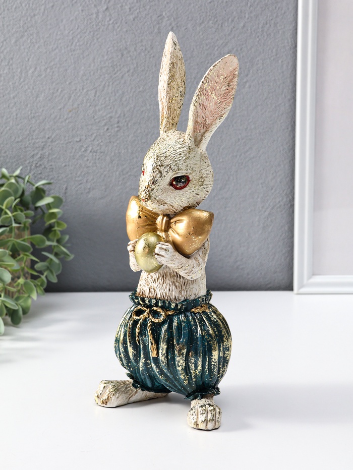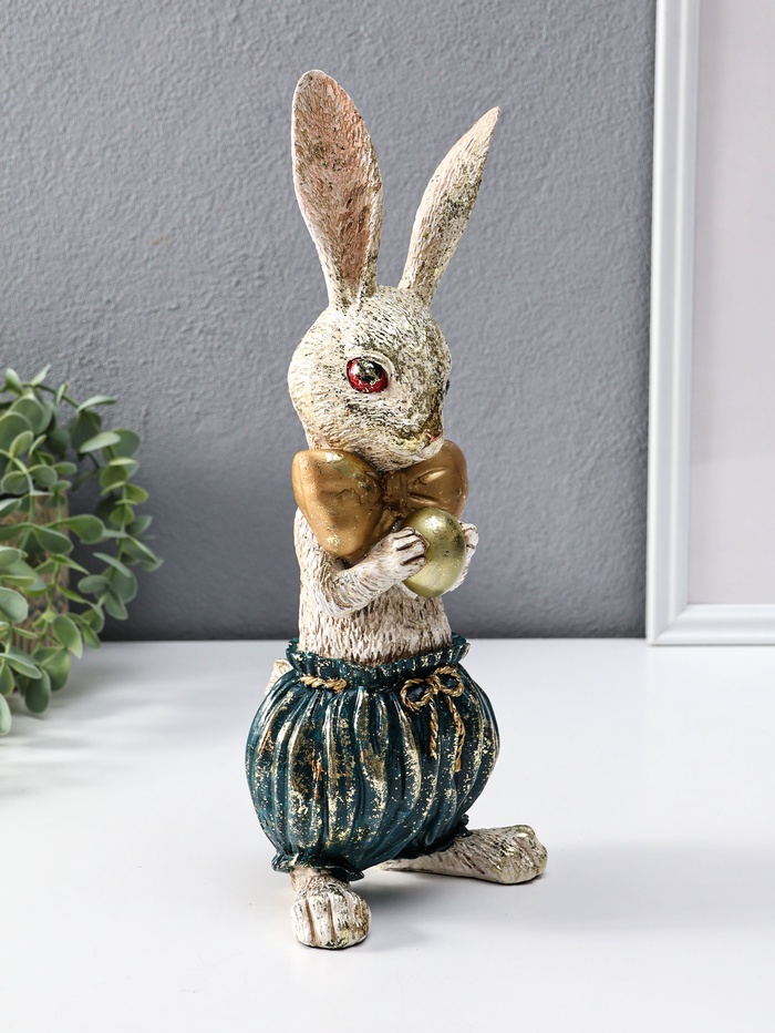 Этот пасхальный зайчик с золотым яйцом станет тёплым символом праздника и уюта в вашем доме. Фигурка, выполненная из прочного полистоуна, передаёт трогательный образ весеннего чуда — кролик, бережно несущий драгоценное яичко, наполненное надеждой и светом. Универсальная тематика делает его желанным подарком не только на Пасху, но и как знак внимания близкому человеку или изящное дополнение к постоянной коллекции.