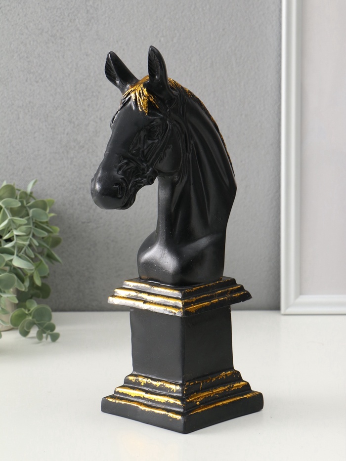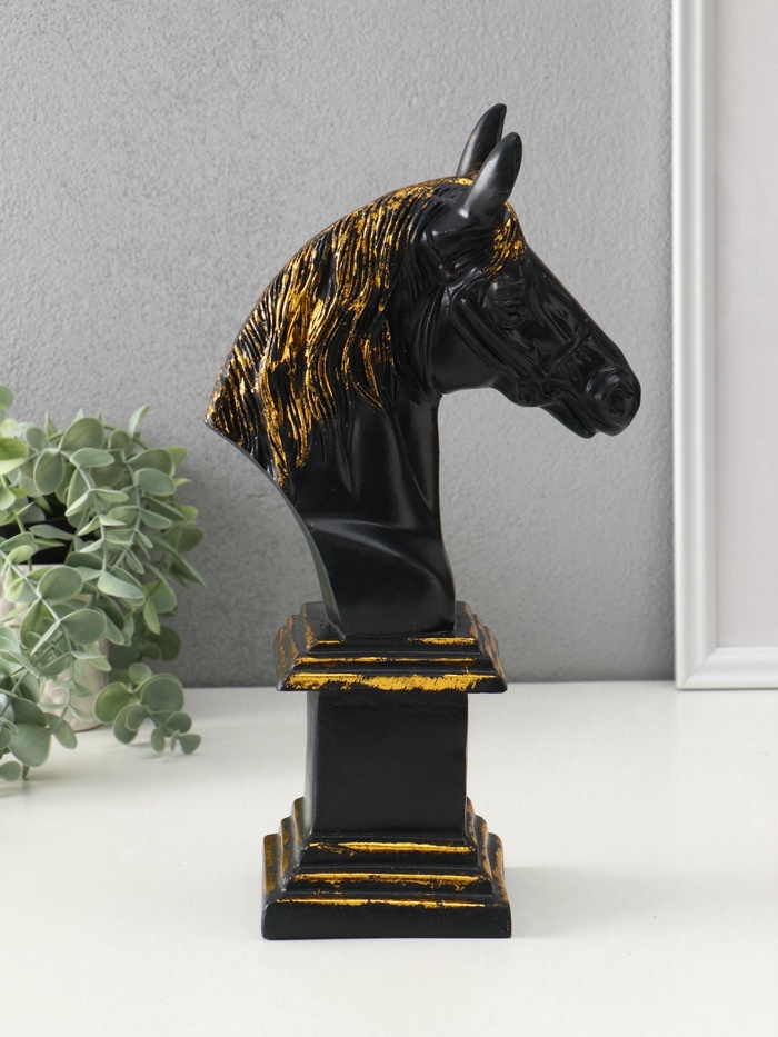 Фигура «Постамент: Бюст лошади», 31.5×10×17 см, чёрный с позолотой — Характеристики