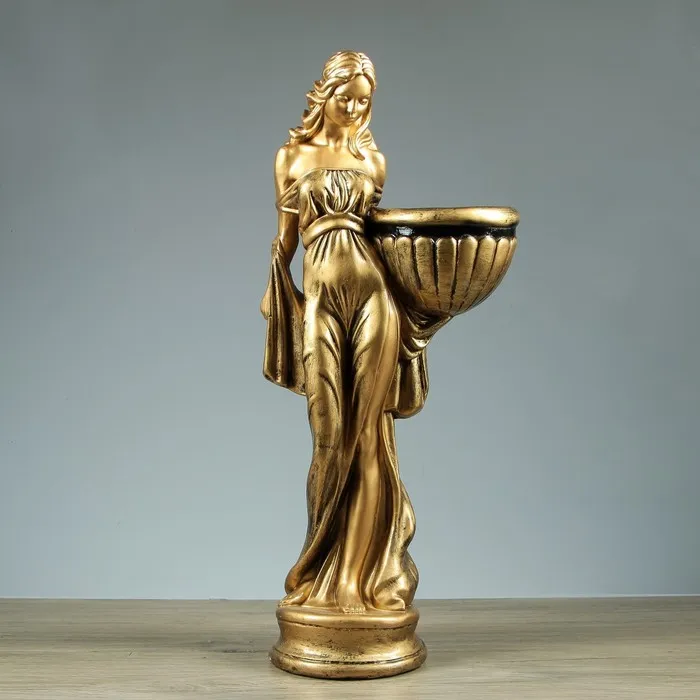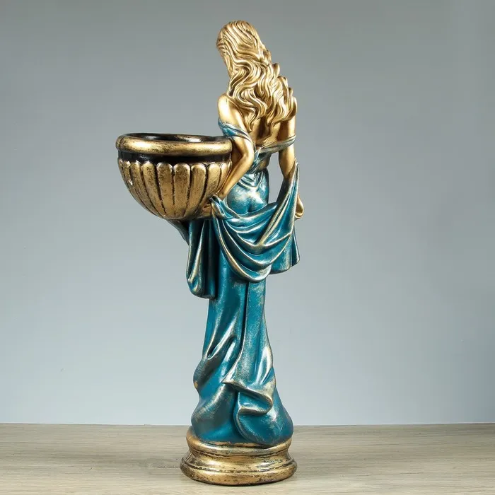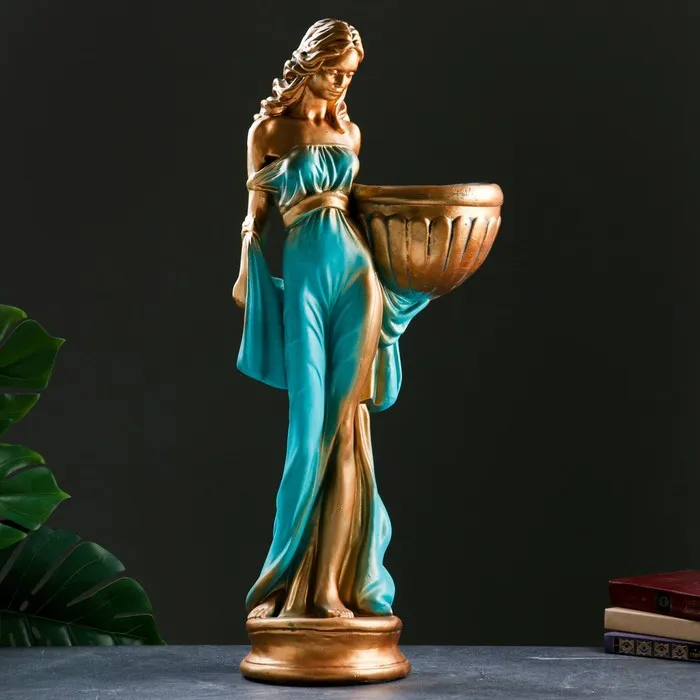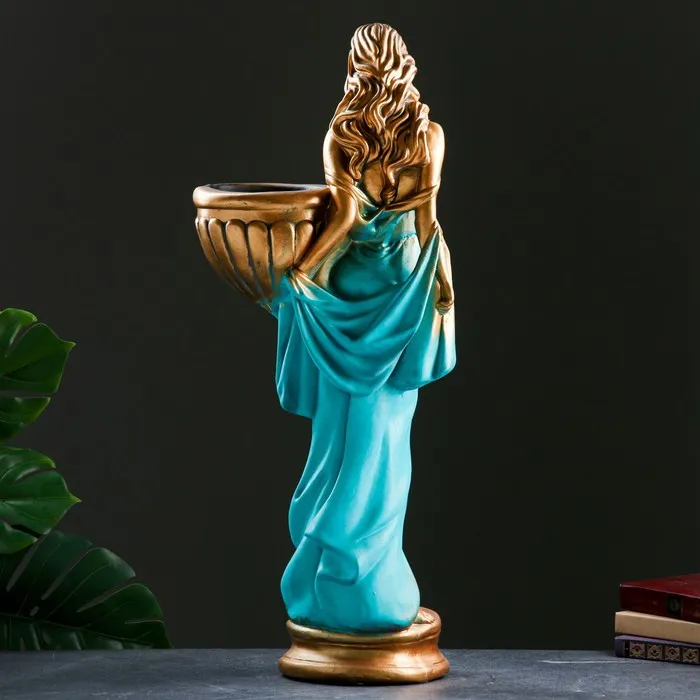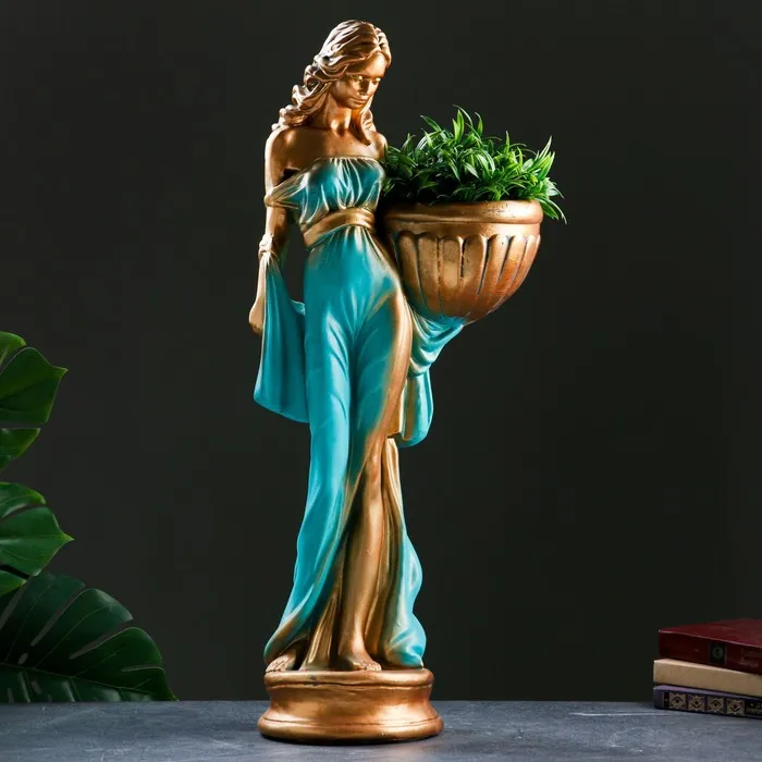 Фигура с кашпо "Девушка в платье" бронза голубой-зеленый, 1,2 л / 21х84х34см — Характеристики