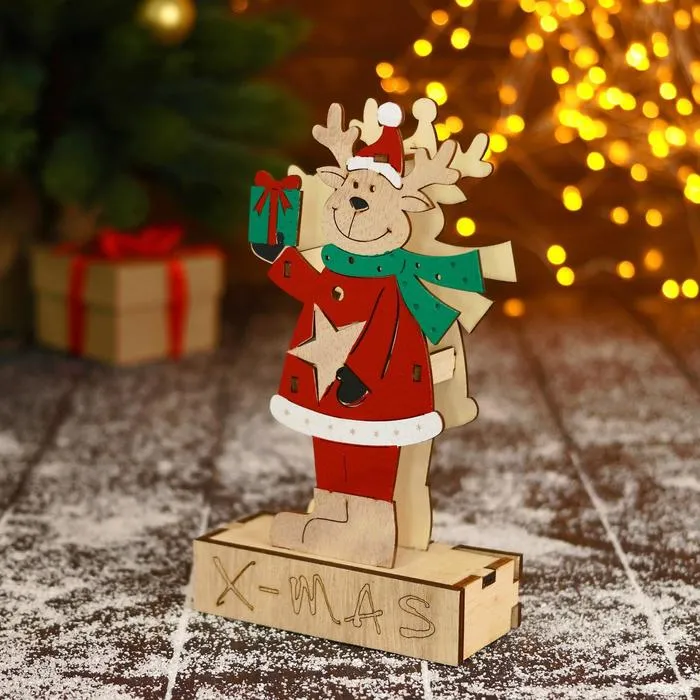 Светильник новогодний «Оленёнок шубке и шарфике, с подарком» 12×20.5 см