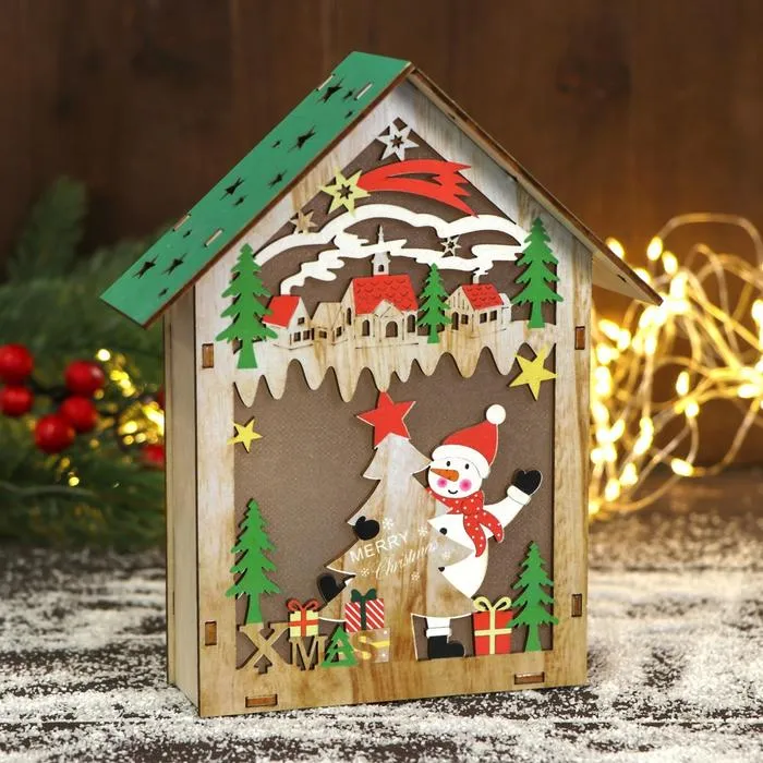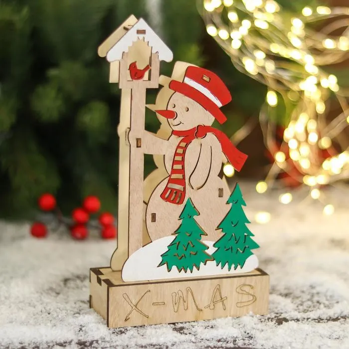 Светильник новогодний «Снеговик в лесу у скворечника» 12×21 см