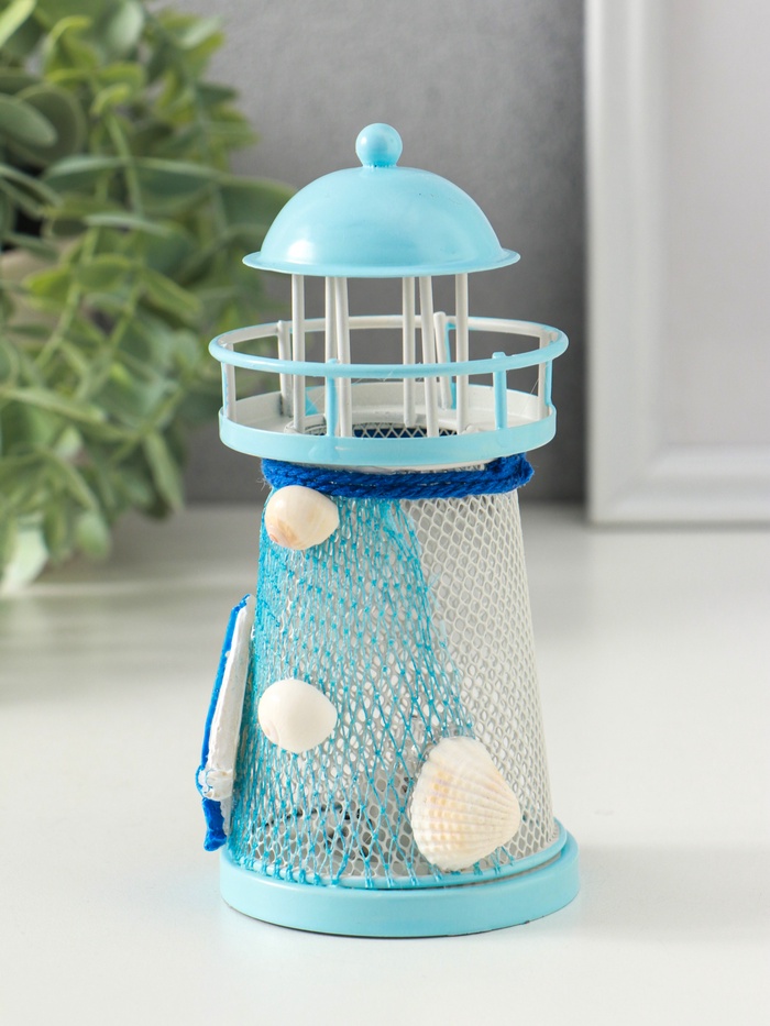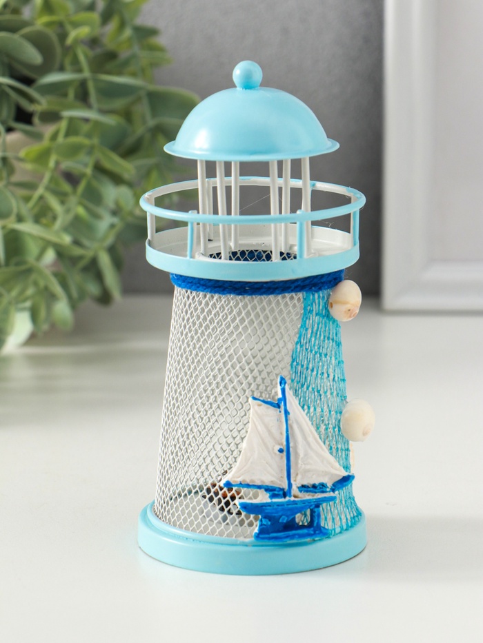 - Стилизация под маяк с корабликом и рыболовной сетью для полного погружения в морскую тематику.