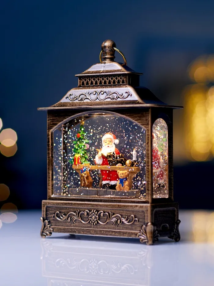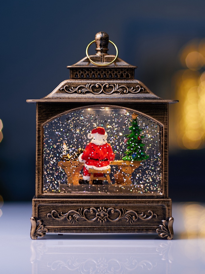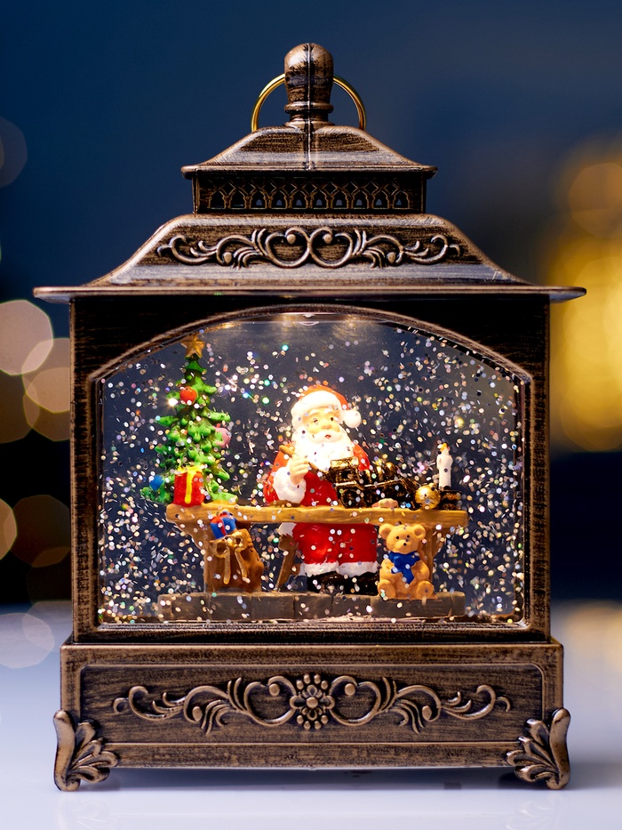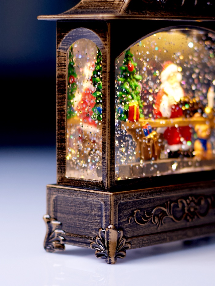 Светодиод излучает тёплый белый свет, который мягко освещает пространство и не раздражает глаза, создавая уютную и спокойную атмосферу. Эффект снежного вихря наполняет фигуру динамикой и живостью, а встроенная музыка добавляет звуковое сопровождение, усиливая ощущение праздника и радости.