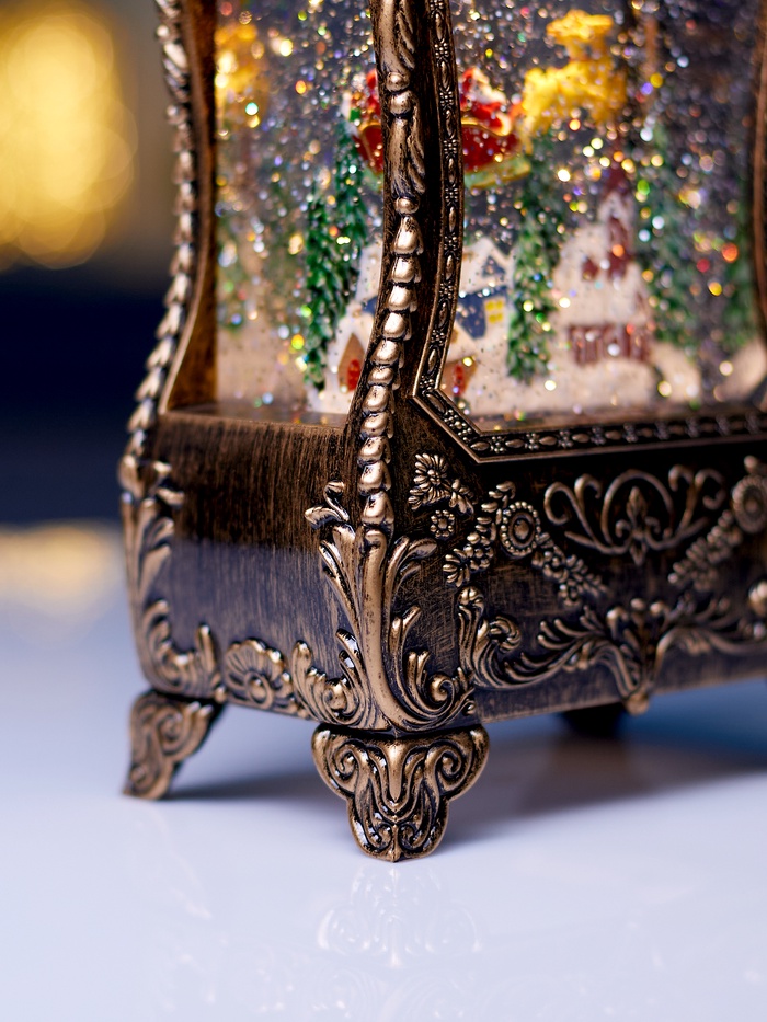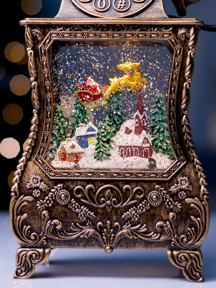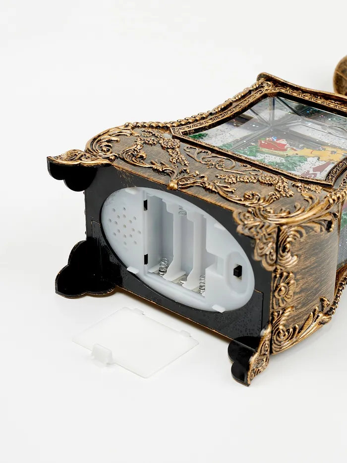 Эффект снежного вихря оживляет композицию, добавляя динамики и волшебства, а встроенная музыка наполняет пространство мелодиями, которые гармонично дополняют визуальное оформление. Универсальное питание — от трёх батареек AAA (в комплект не входят) или USB — обеспечивает удобство эксплуатации и свободу размещения без привязки к электросети.