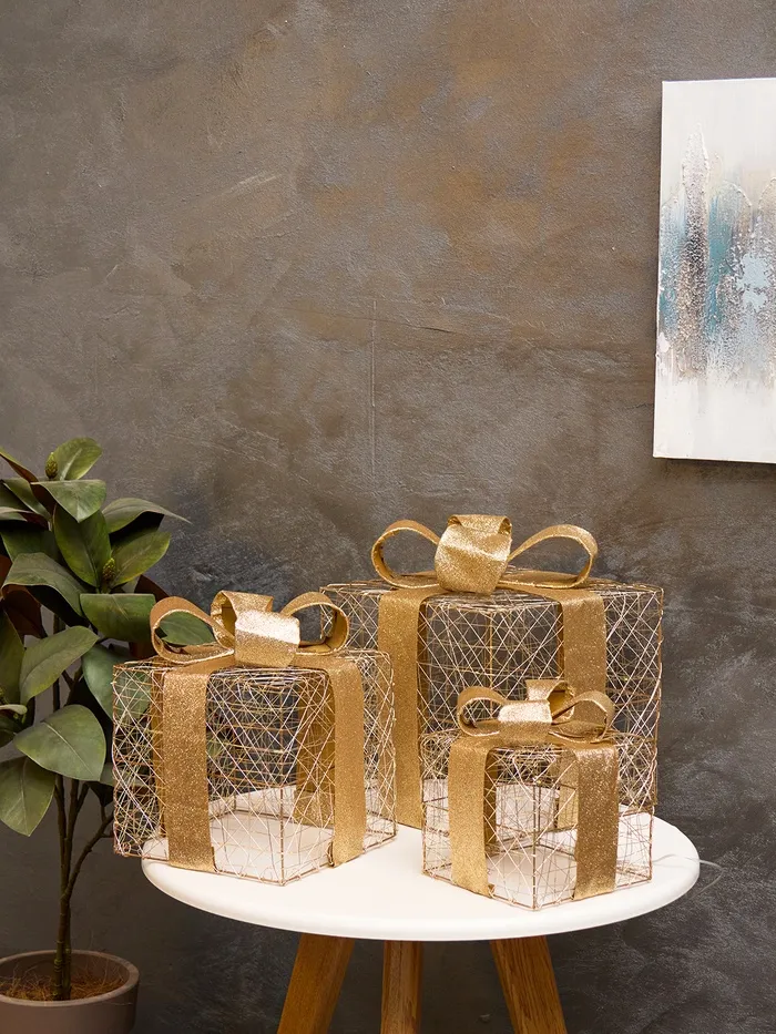 Фигура световая «Кубы золотистые», 25×20х15 см, 90 LED, батарейки ААх8 (не в компл.), свечение тёплое белое — Характеристики
