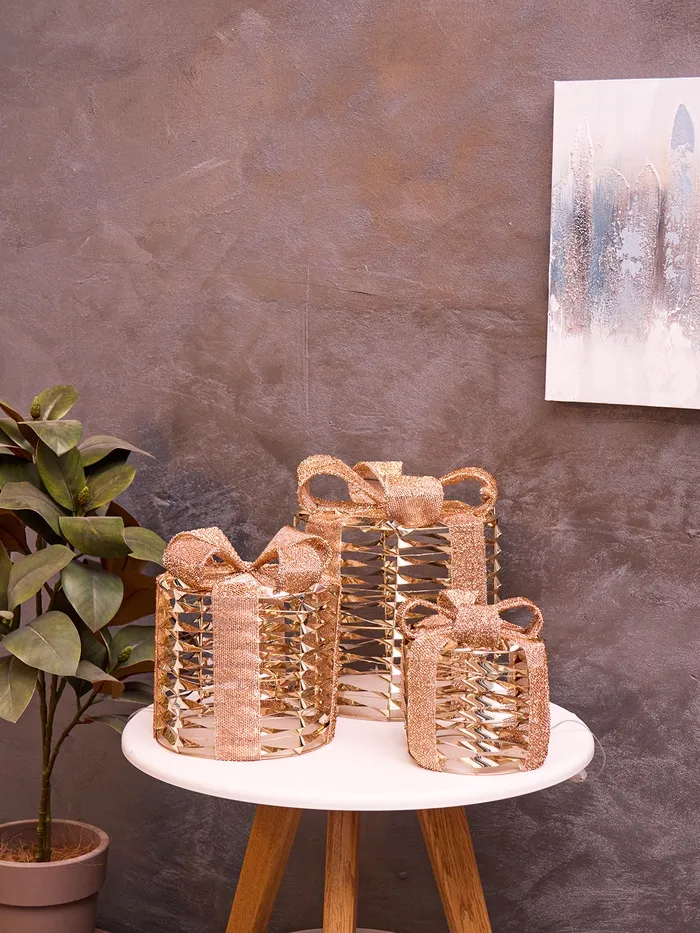 Фигура световая «Подарки цилиндр бежевые», 25×20х15 см, 90 LED, батарейки ААх8 (не в компл.), свечение тёплое белое — Характеристики