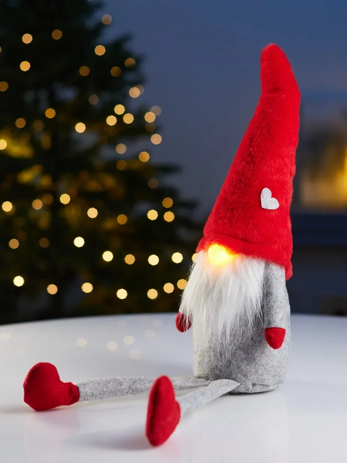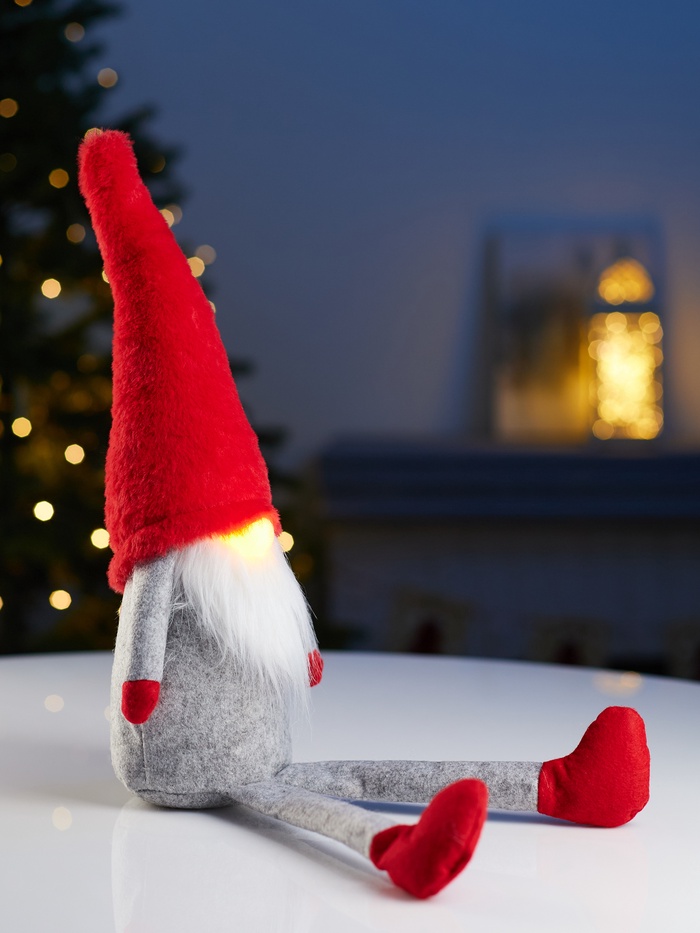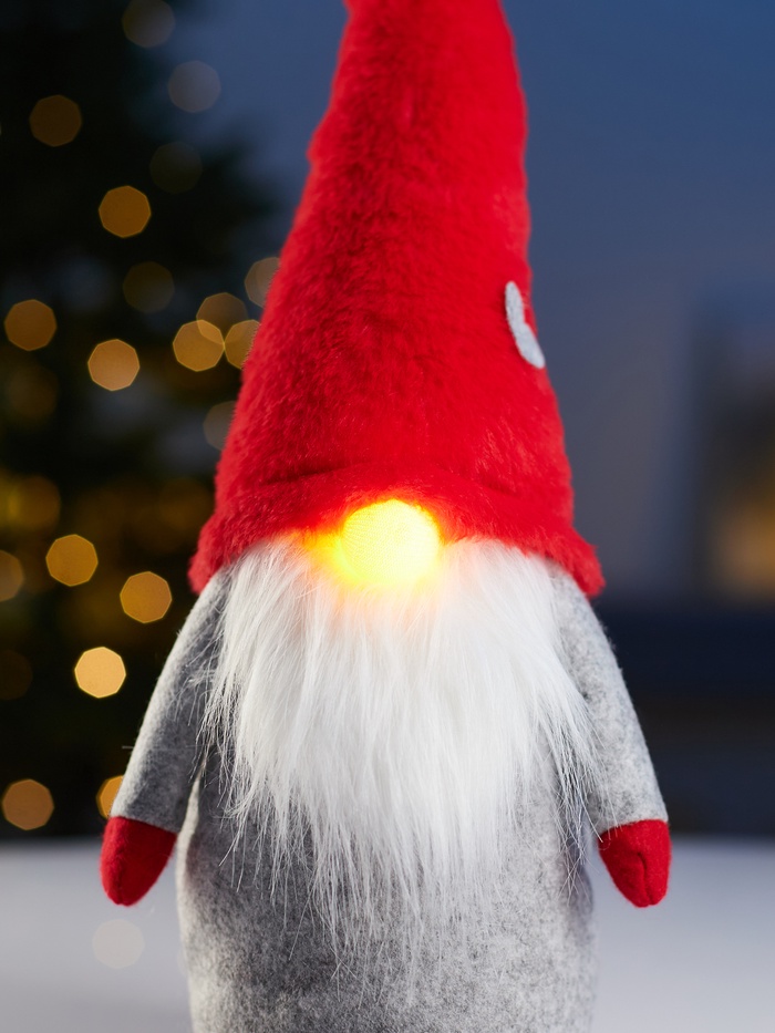 Питание от трёх батареек LR1130 обеспечивает автономную работу без лишних проводов и ограничений по размещению. Лёгкий и приятный на ощупь материал гарантирует безопасность и долговечность, а форма гномика прекрасно впишется в любой стиль новогоднего декора.