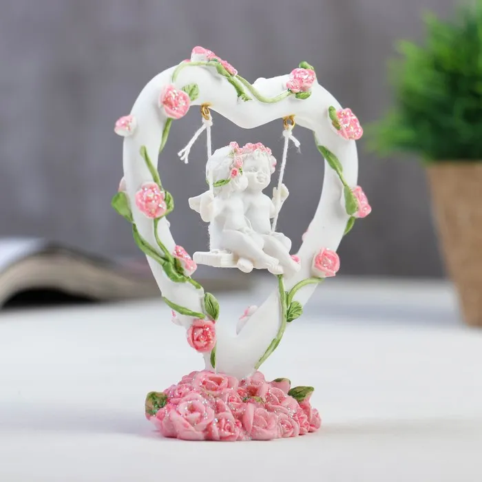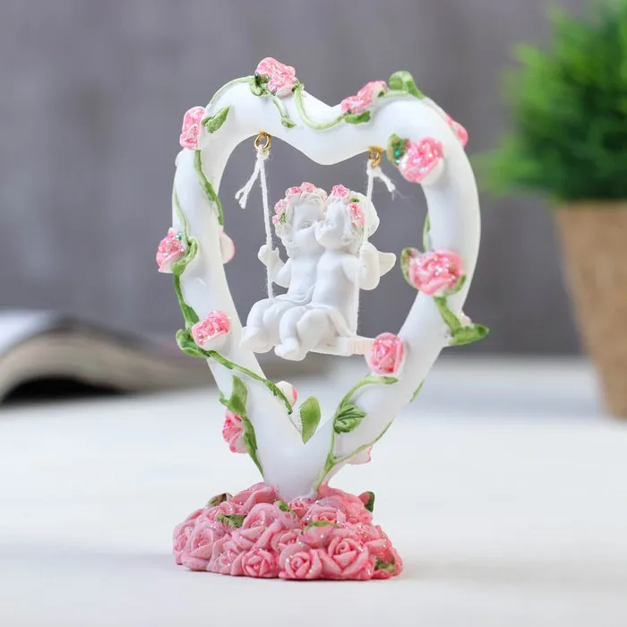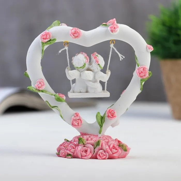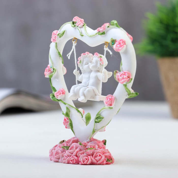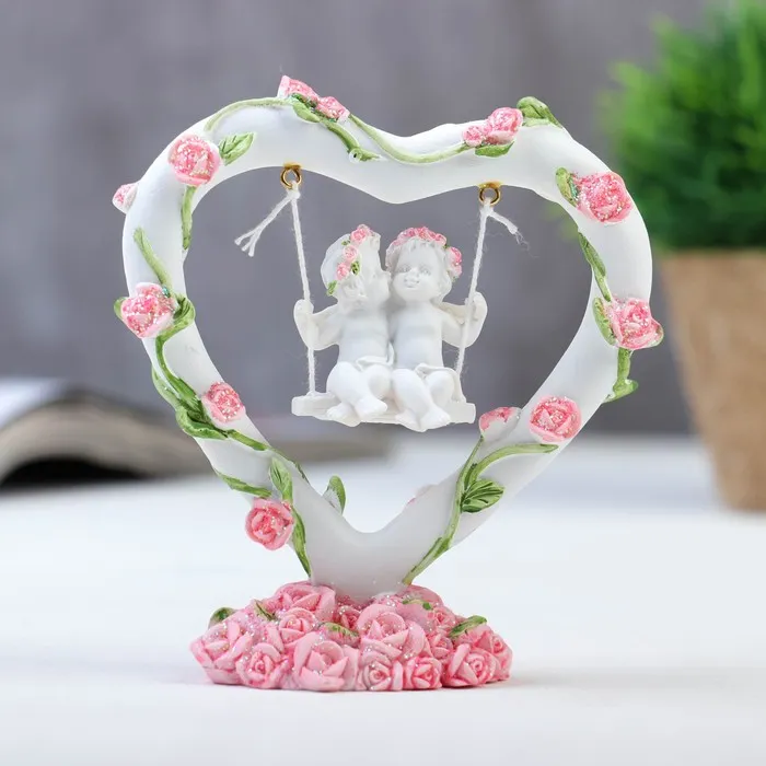 Фигурка «2 ангелочка на качелях в сердце», в венке из роз, 11×10×4 см — Характеристики