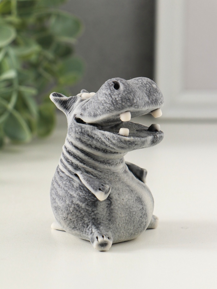 Эта серая фигурка бегемота станет лаконичным акцентом в интерьере или тёплым подарком без повода. Модель передаёт спокойную мощь животного в момент отдыха, создавая атмосферу умиротворения.