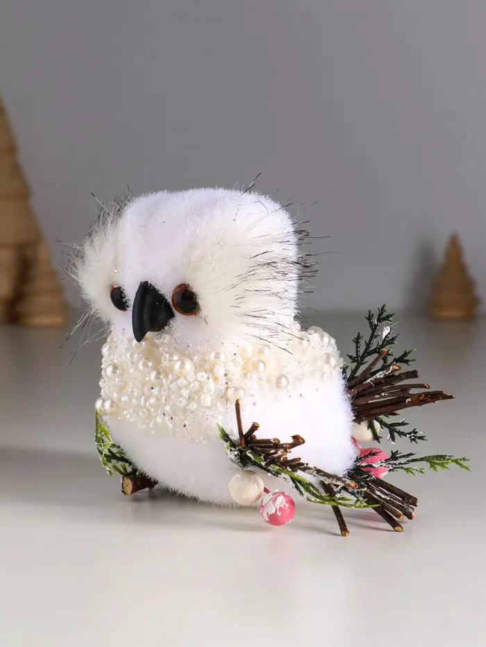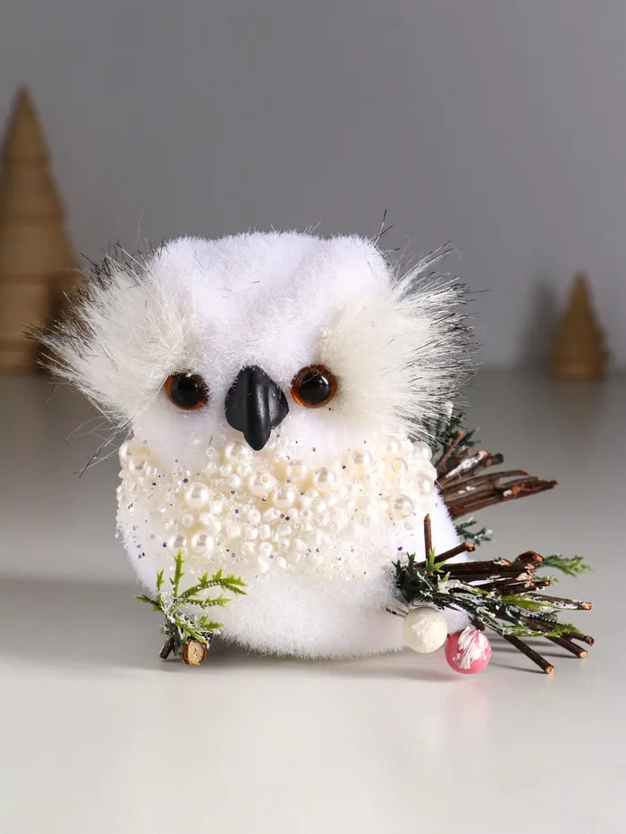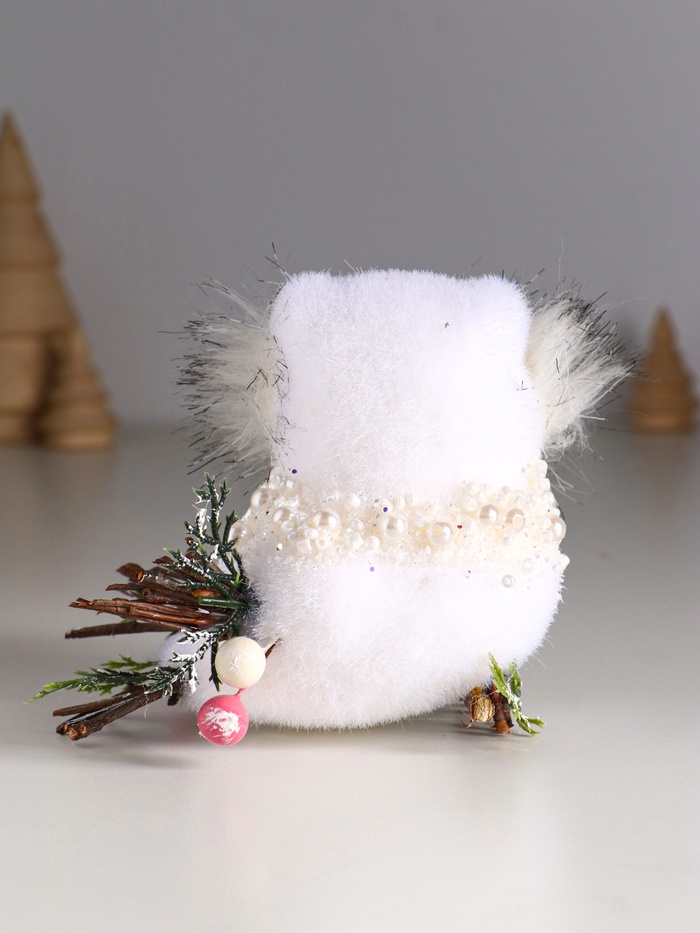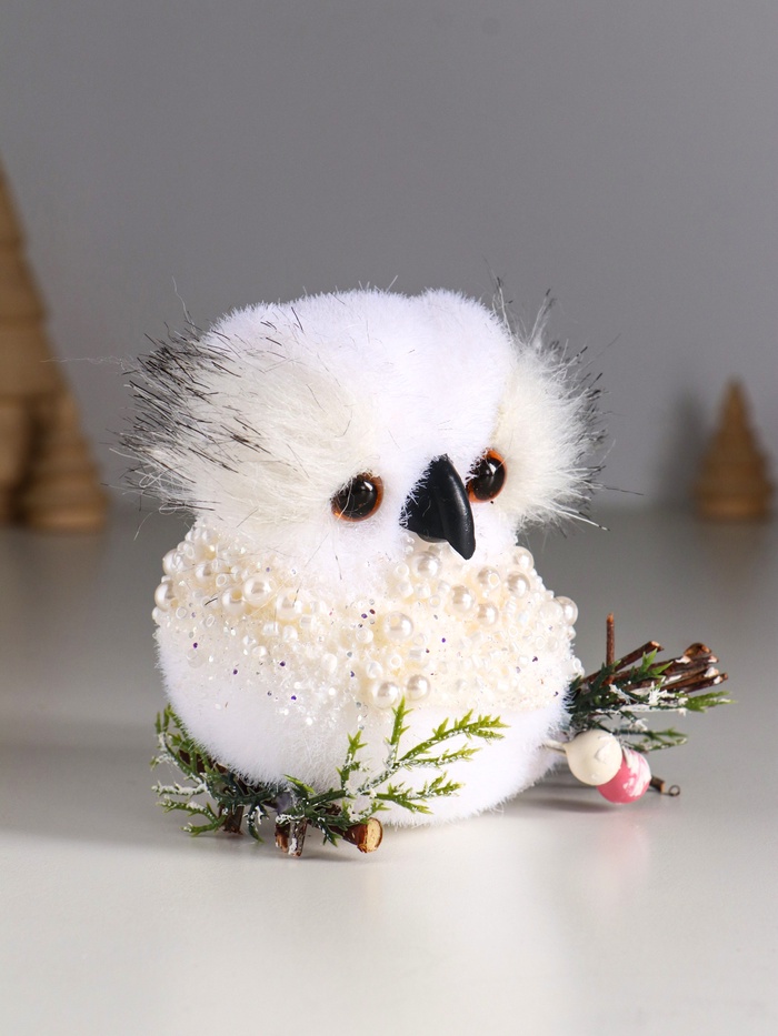 Мягкая фигурка совёнка в белом цвете с изящными бусинками, выполненная из текстиля, привнесёт уют и шарм в ваш интерьер. Размеры 13×7×9 см делают её компактной и удобной для размещения на полке или столе, а форма птицы-филина с интересными деталями подчёркивает праздничную атмосферу.