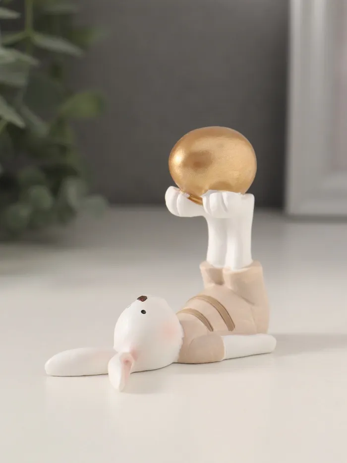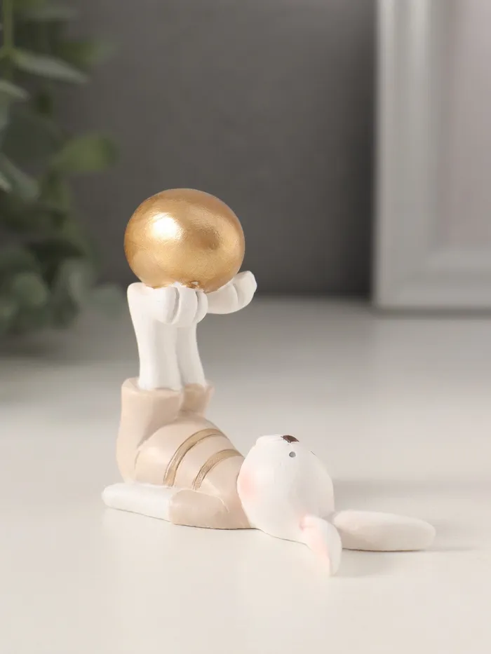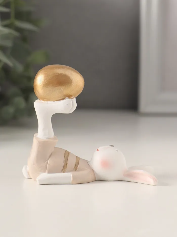 Фигурка «Белый зайчик в бежевом наряде, с золотым яичком», полистоун, 8×4.5×7 см — Характеристики