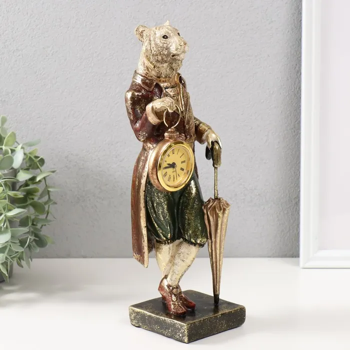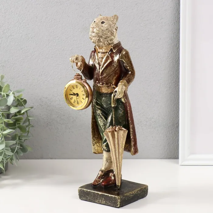 Фигурка-часы настольные полистоун «Белый тигр в камзоле с зонтом», 9.5×9.5×30.5 см — Характеристики