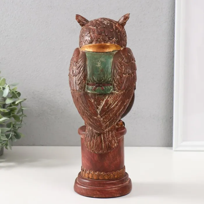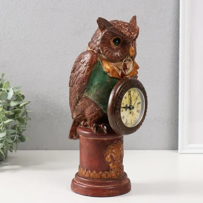 Фигурка-часы настольные полистоун «Филин в зелёном пиджаке на колонне», 15×12.5×32 см — Характеристики