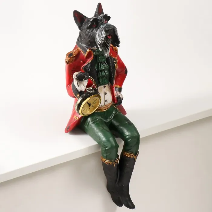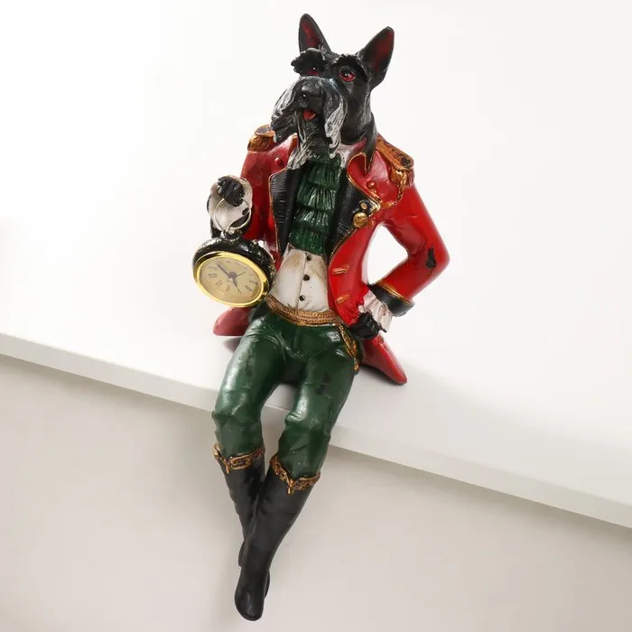 Фигурка-часы настольные полистоун «Терьер в красном камзоле сидит», 16.5×14.5×36.5 см — Характеристики