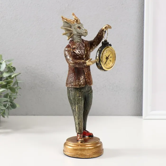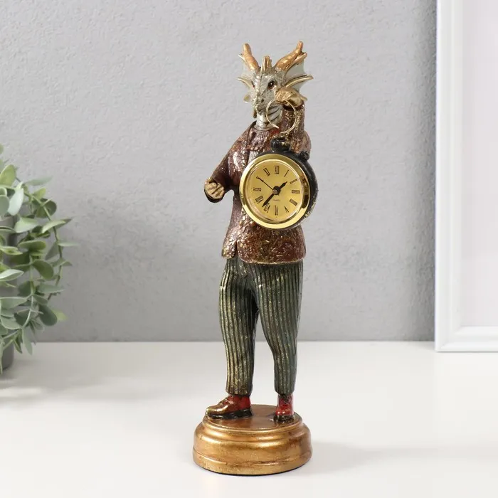 Фигурка-часы настольные полистоун «Золотистый дракон», 9.5×8.5×28 см — Характеристики