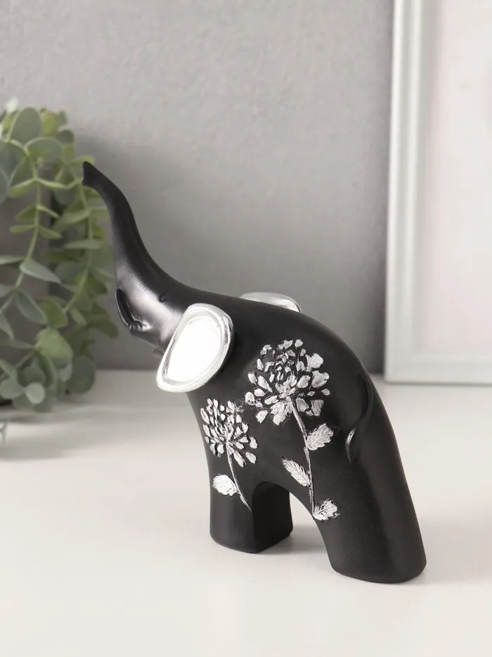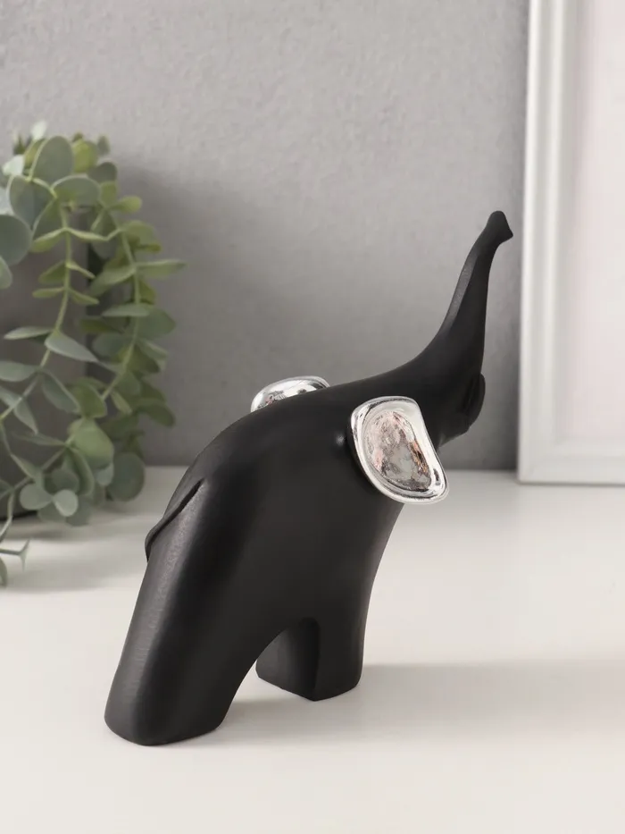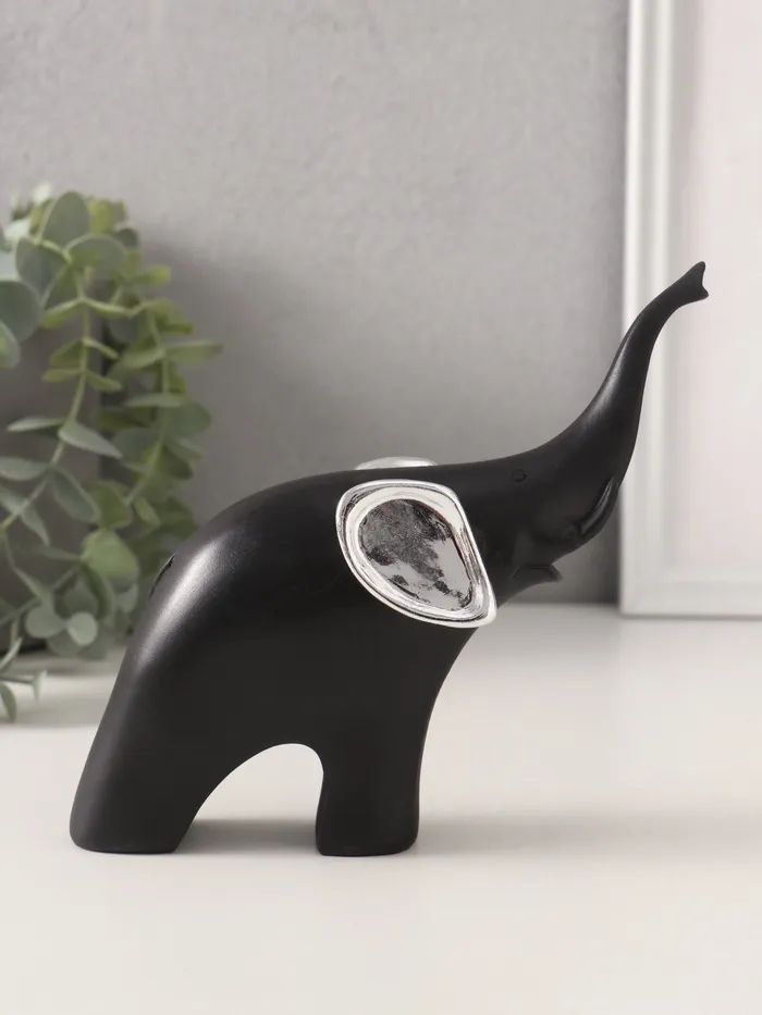 Фигурка «Чёрный слон с серебряными ушками хобот вверх», полистоун, 15×5×14см — Характеристики