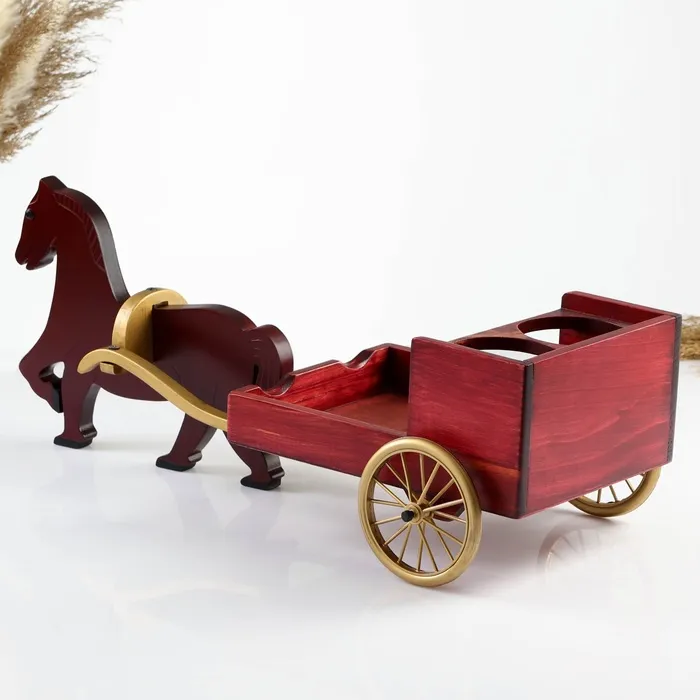 Изысканная стойка для бутылок «Лошадка» станет ярким акцентом на вашем столе и позволит легко организовать хранение любимых напитков. Выполненный из натурального дерева, данный аксессуар порадует не только своей функциональностью, но и стильным внешним видом.